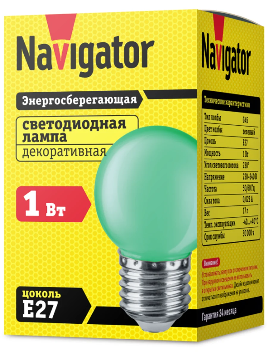 Лампа светодиодная 71 828 NLL-G45-1-230-G-E27 1Вт шар E27 176-264В зел. Navigator 71828 - купить в KeepBuilding | KeepBuilding