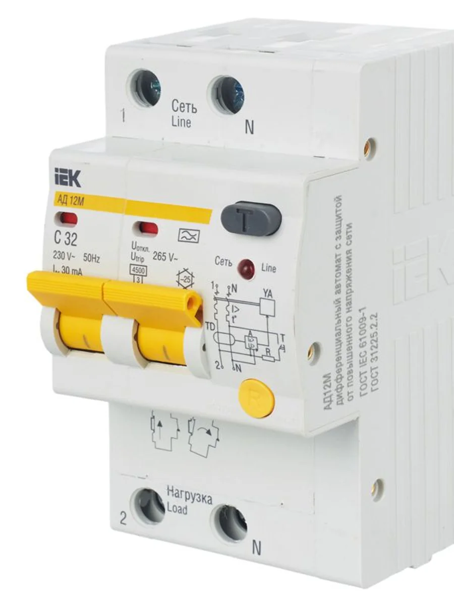 Выключатель автоматический дифференциального тока 2п C 32А 30мА тип A 4.5кА АД-12М KARAT IEK MAD12-2-032-C-030 - купить в KeepBuilding | KeepBuilding
