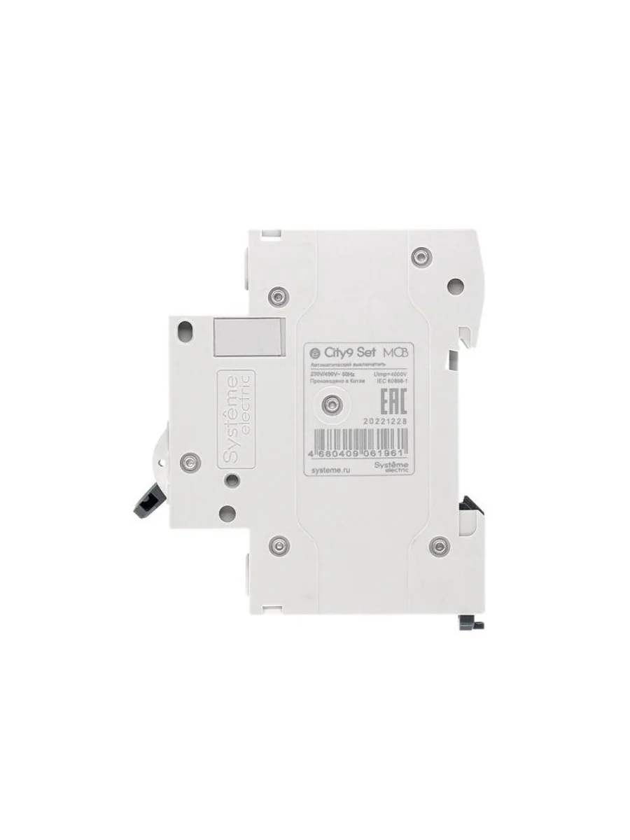 Автоматический выключатель серии City9 Set Systeme Electric, 1-полюсный, номинальный ток 16 А, характеристика С, Icn = 4.5 кА. Применяется в электрических сетях напряжением 230 В. Предназначен для защиты от перегрузок и токов короткого замыкания. Оснащен механизмом «мгновенной коммутации». Ударопрочный корпус из специального пластика с 6 металлическими заклепками. Безопасные клеммы исключают попадание кабелей в заклеммное пространство (ранее Schneider Electric EZ9F34116).