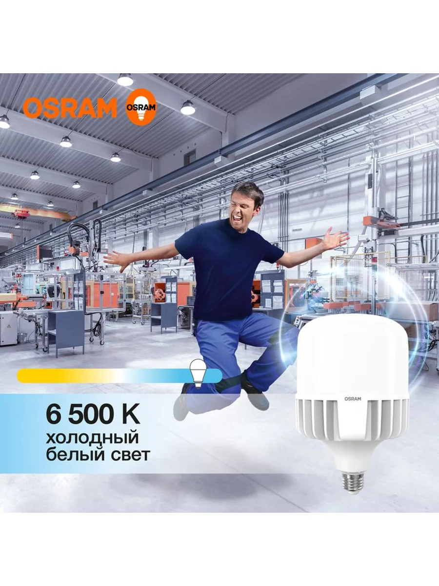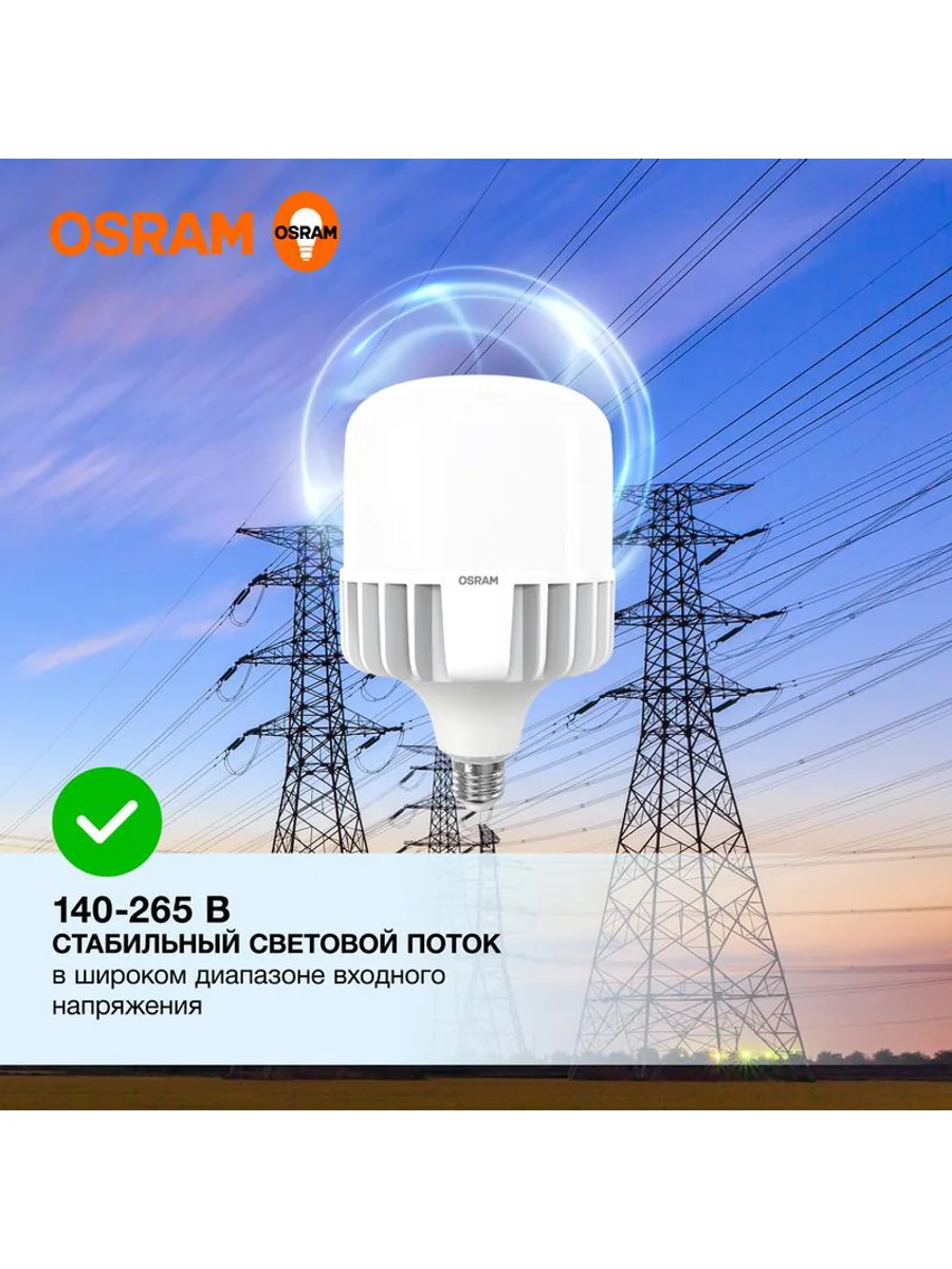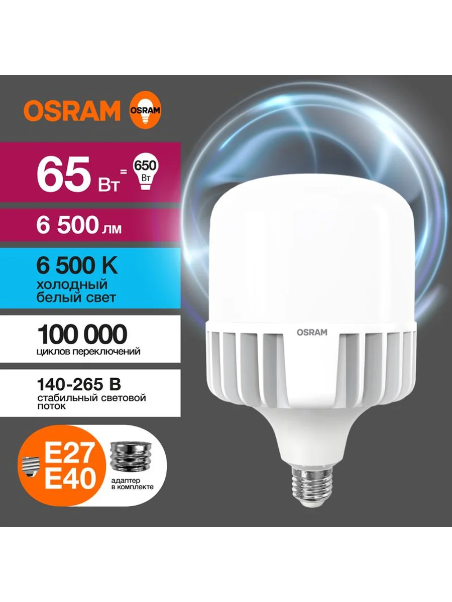 Лампа светодиодная HW 65Вт T матовая 6500К холод. бел. E27/E40 6500лм угол пучка 200град. 140-265В PF>/=0.9 алюм. (замена 650Вт) OSRAM 4099854121579 - купить в KeepBuilding | KeepBuilding