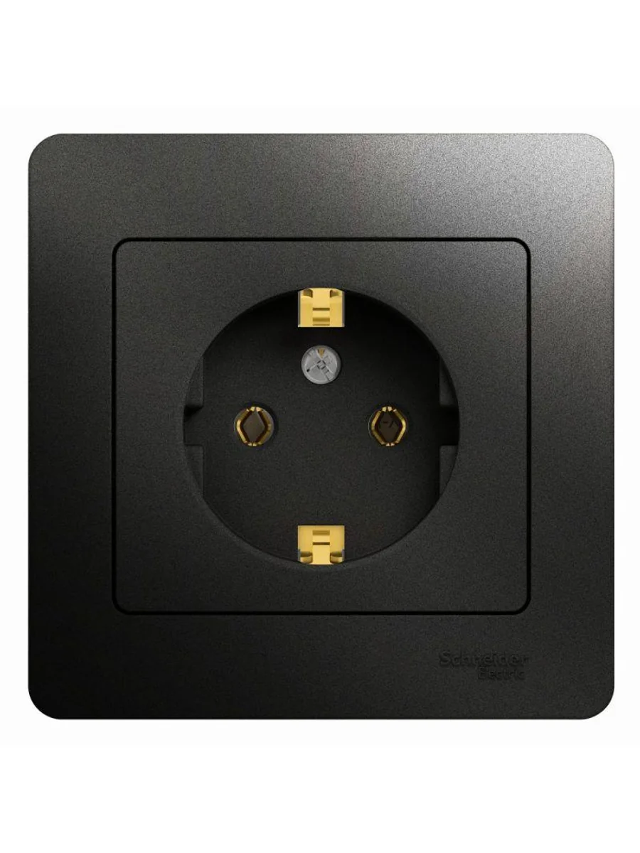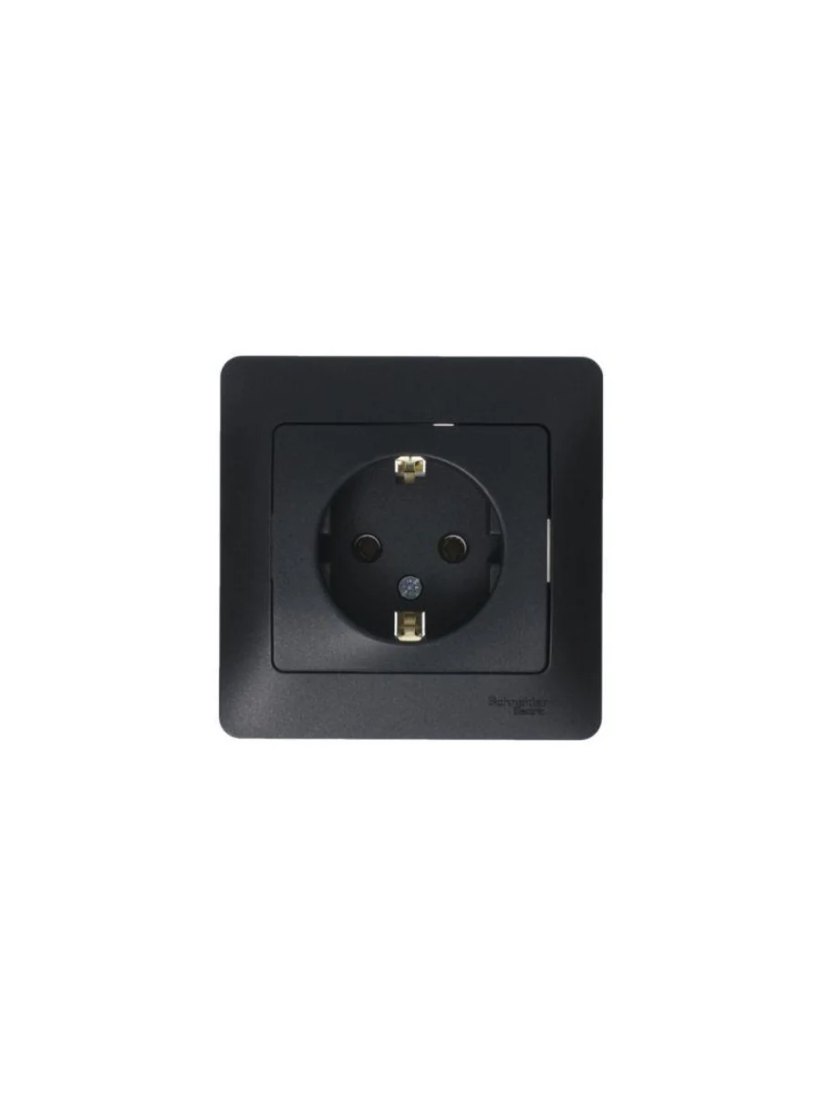 Розетка Systeme Electric (ранее Schneider Electric) серии Glossa (в сборе, цвет антрацит) одинарная без заземления и без шторок подходит для сетей 250 В, на ток 16 А. - Выполнен из материала PС+ASA, стойкого к УФ-излучению и появлению царапин. - Эргономичные клеммы розеток расположены в один ряд.