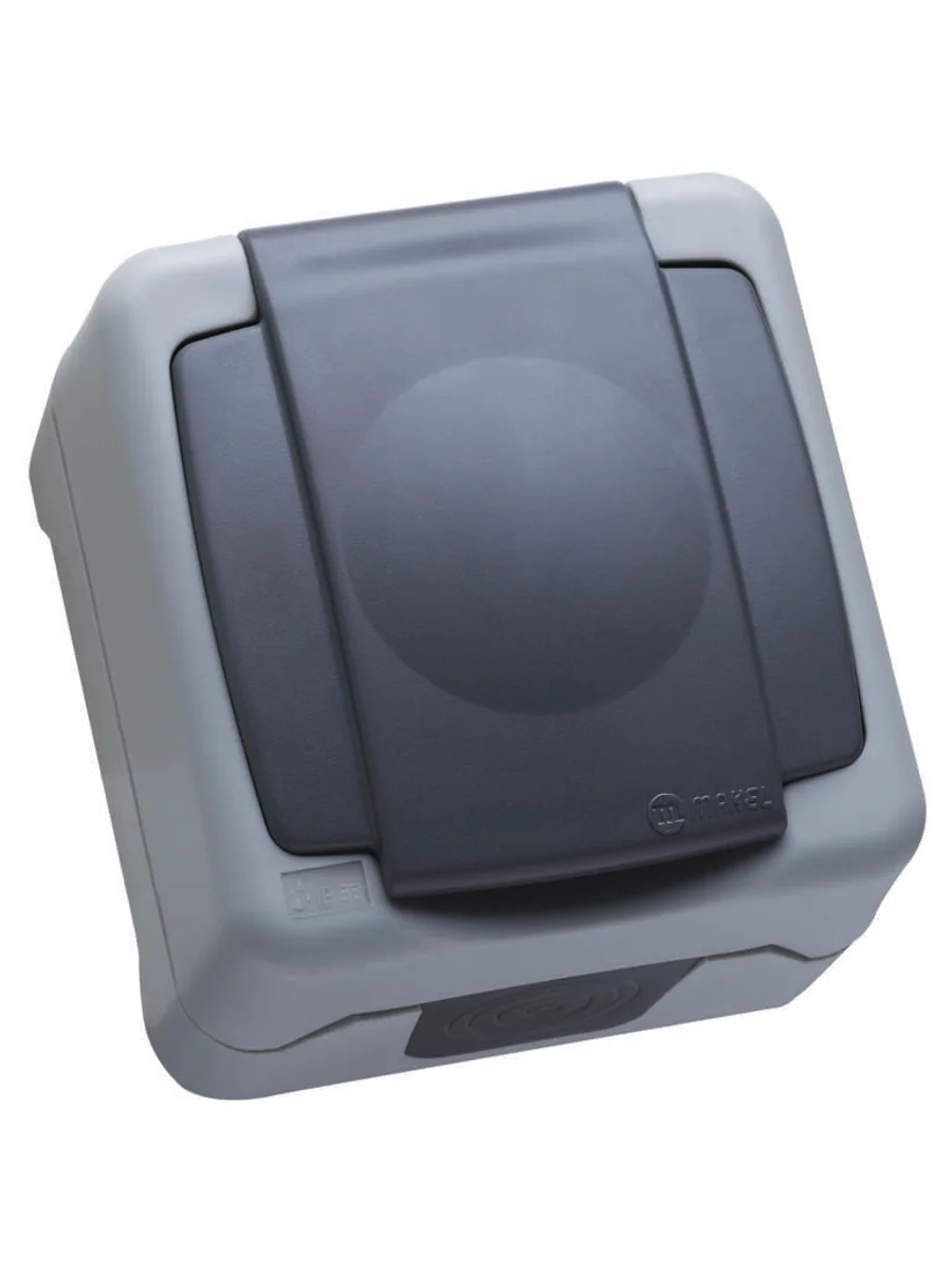 Розетка 1-м ОП 16А IP55 с заземл. с крышкой сер. Makel 36064099 - купить в KeepBuilding | KeepBuilding