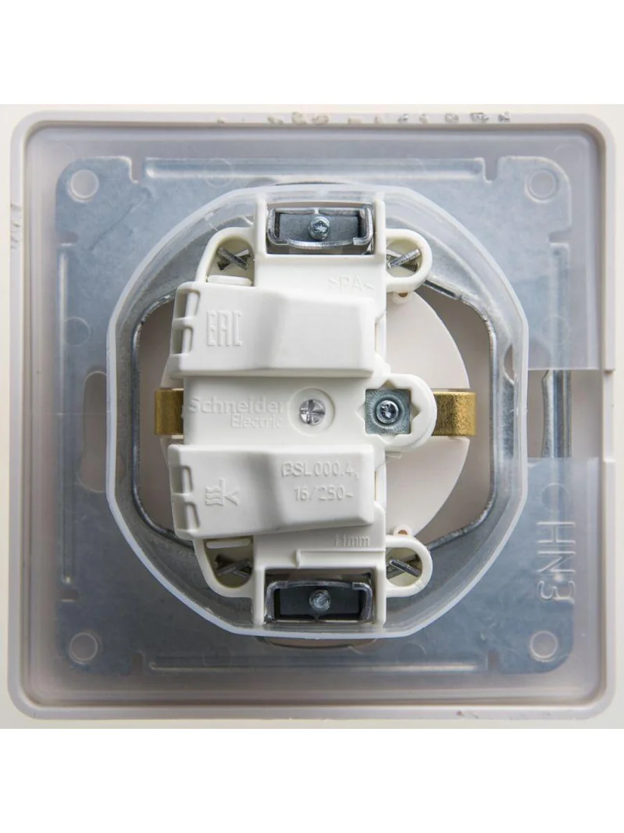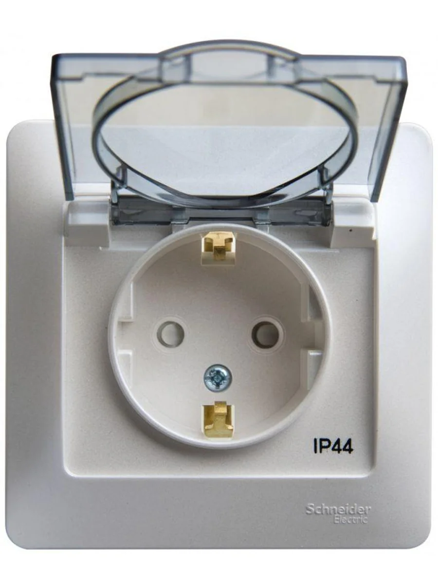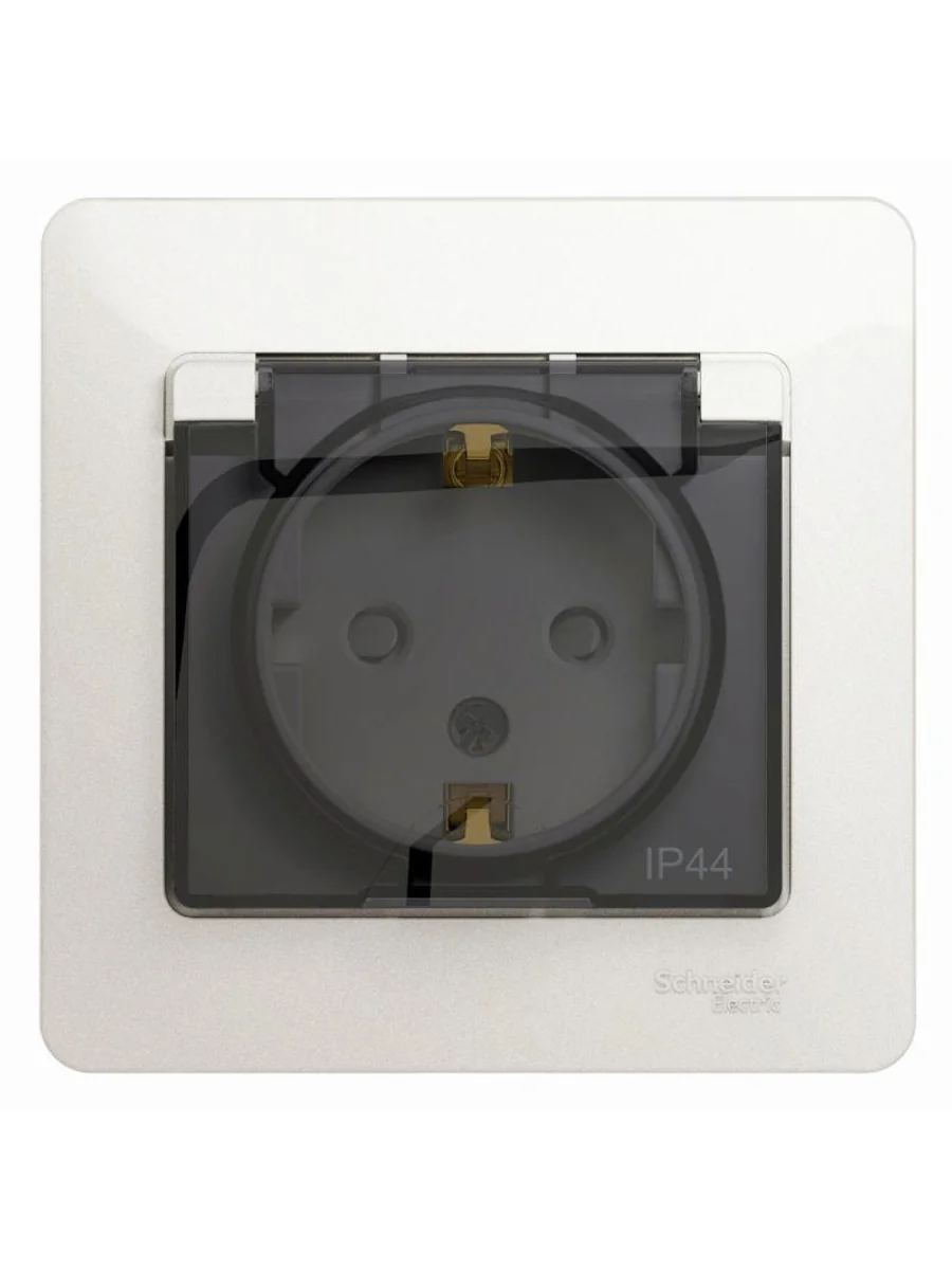 Розетка Systeme Electric (ранее Schneider Electric) серии Glossa (в сборе, цвет перламутр) одинарная с заземлением, шторками и крышкой подходит для сетей 250 В, на ток 16 А. - Изделие со степенью защиты IP44 обеспечит безопасность использования в ванной и на кухне. - Заземляющий контакт обеспечивает дополнительную защиту от удара электрическим током. При наличии заземления электрический потенциал уходит в землю, защищая человека. - Выполнен из материала PС+ASA, стойкого к УФ-излучению и появлению царапин.