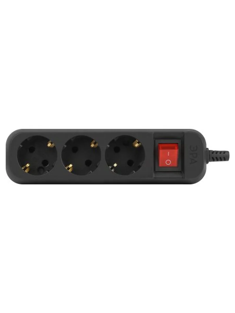 Колодка ЭРА KX-3es-B на 3 розетки, с заземлением, с выключателем, черная. Максимальная мощность - 16 А/3500 Вт. Для кабеля до 3х1,5мм2