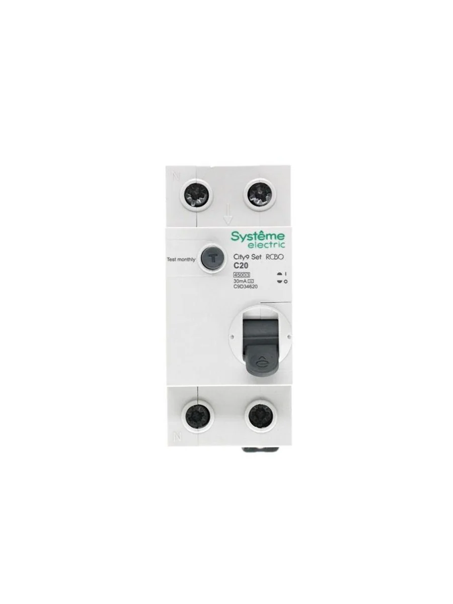 Автоматические выключатели дифференциального тока (АВДТ) серии City9 Set Systeme Electric,1P+N, номинальный ток 20 А, характеристика С, Icn = 4.5 кА, ток утечки 30 мА, тип АС. АВДТ применяется в электрических сетях напряжением 230В. Предназначен для защиты сети от перегрузок, людей от поражения электрическим током и токов короткого замыкания. Уставка по току утечки 30 мА обеспечивает гарантированную защиту людей при прямом прикосновении. Кнопка тест обеспечивает проверку работоспособности аппарата. Крепление на DIN-рейку шириной 35 мм. Безопасные клеммы (ранее Schneider Electric EZ9D34620).