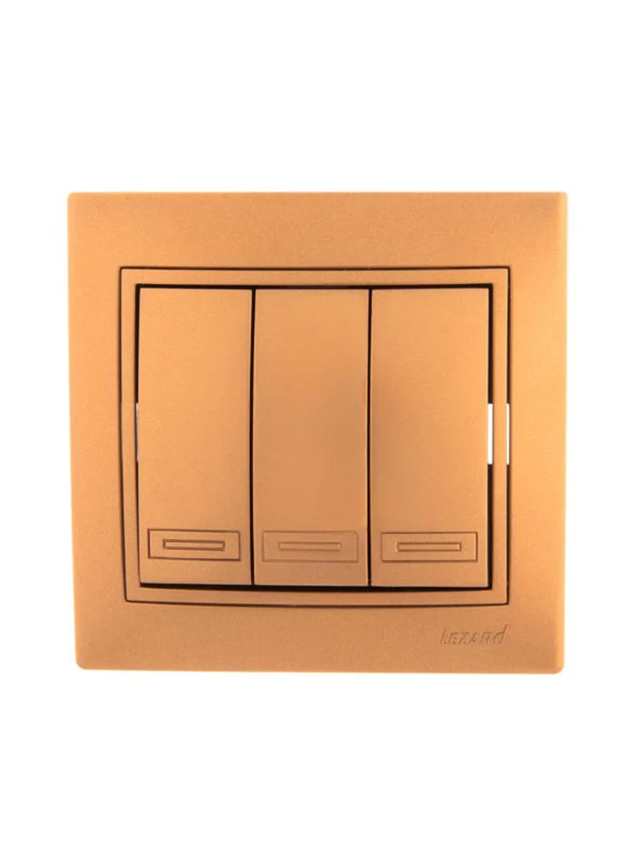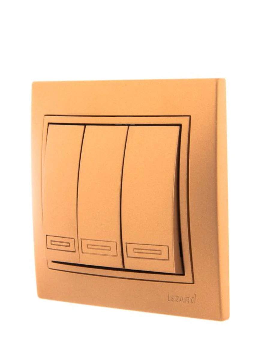 • НАЗНАЧЕНИЕ Выключатель 3-клавишный это двухпозиционный коммутационный аппарат с замыкающими (нормально-разомкнутыми) контактами, предназначенный для работы в сетях с напряжением до 1000 вольт, не предназначенный для отключения токов короткого замыкания, без специальных устройств дугогашения, местного управления, с ручным приводом. • ОБЛАСТЬ ПРИМЕНЕНИЯ В основном применяются для включения и выключения освещения в бытовых и производственных условиях. • ПРИНЦИП ДЕЙСТВИЯ Принцип действия основан на коммутации контактов механическим способом (нажатием) , при этом положения коммутации фиксированы и позволяют находится в этом режиме достаточно долго, вплоть до следующего воздействия. • ДОПОЛНИТЕЛЬНЫЕ ПРИНАДЛЕЖНОСТИ ИЛИ АКСЕССУАРЫ