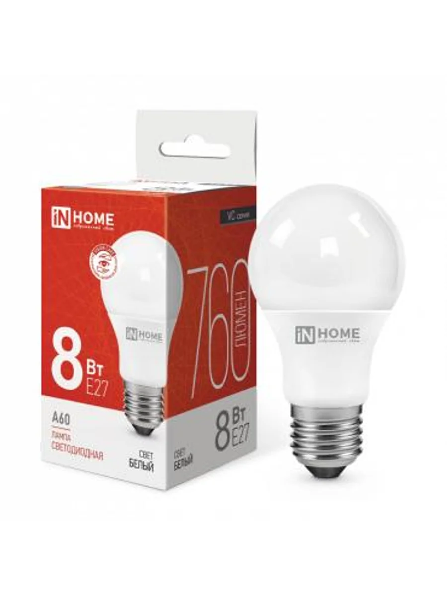 Лампа светодиодная LED-A60-VC 8Вт грушевидная 4000К нейтр. бел. E27 760лм 230В IN HOME 4690612024028 - купить в KeepBuilding | KeepBuilding