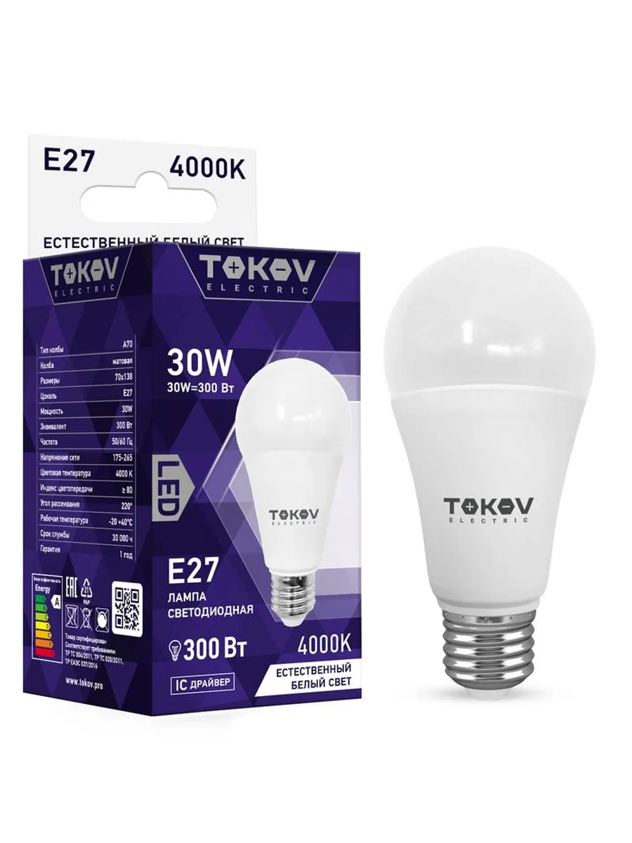 Лампа светодиодная 30Вт А70 4000К Е27 176-264В TOKOV ELECTRIC TKE-A70-E27-30-4K - купить в KeepBuilding | KeepBuilding