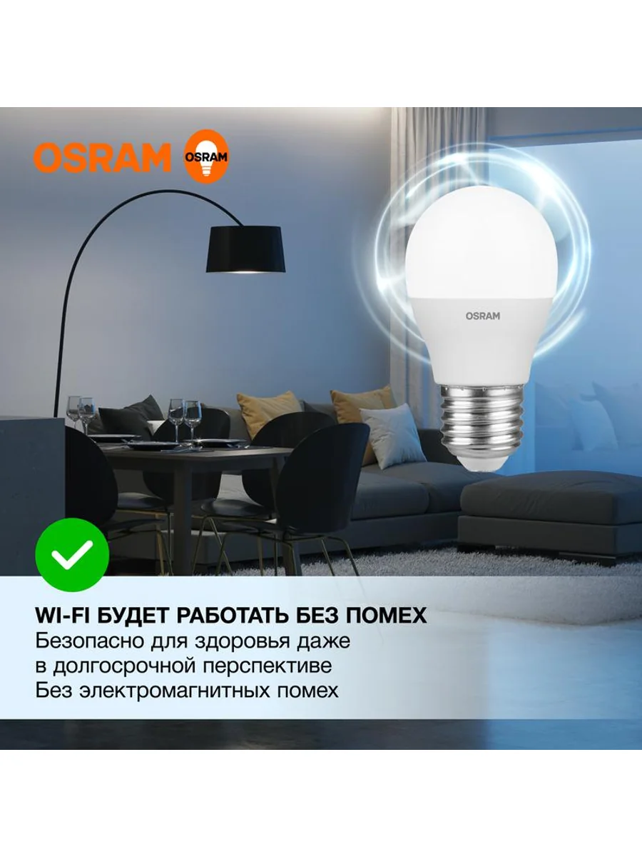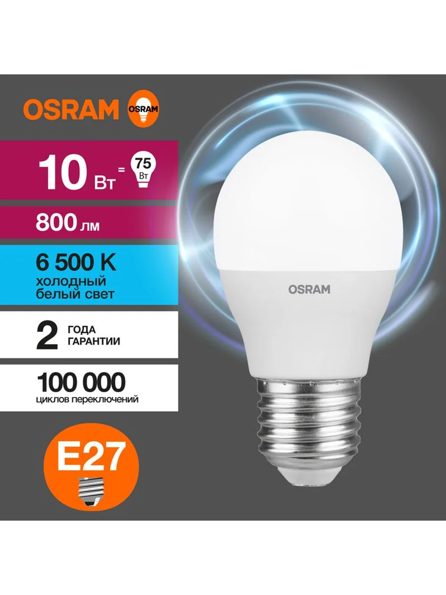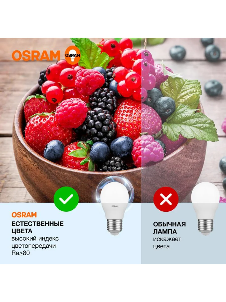 Светодиодные лампы OSRAM - разумная замена традиционным лампам накаливания или галогенным лампам. Светодиодные лампы OSRAM снижают затраты на освещение до 90% при сохранении привычного уровня освещенности. Эта лампа OSRAM серии LED Value выполнена в форме колбы P ("шарик") с цоколем E27. Материал колбы - пластик, исполнение - матовое. Световой поток 800 люмен, что соответствует лампе накаливания на 75 Вт. Такие лампы применяются для внутреннего освещения, хотя в закрытом светильнике можно использовать и на улице. Эта лампа излучает холодный белый свет, угол пучка - широкий. Качество света на высоте: низкие пульсации защищают глаза, а высокий индекс цветопередачи позволяет видеть мир в его истинном цвете. Кроме того, лампы OSRAM полностью безопасны для здоровья, поскольку в них нет опасных материалов по европейскому стандарту RoHS, а также они не производят вредных электромагнитных излучений, что подтверждено ЭМС (сертификат электромагнитной совместимости). Лампа проработает долго: срок службы - 25000 часов, 2 года гарантии. Светодиодные лампы OSRAM - умный выбор для здоровья семьи и кошелька!