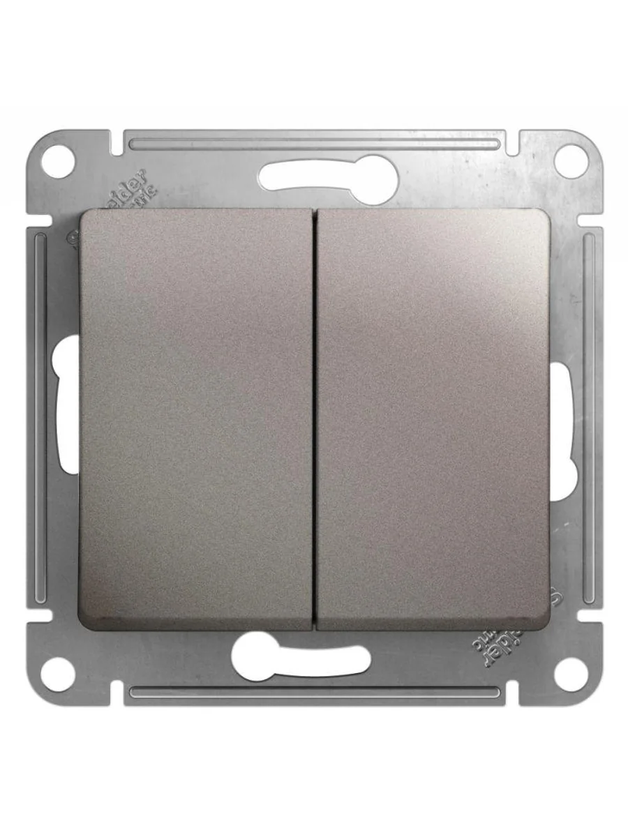 Механизм Systeme Electric (ранее Schneider Electric) серии Glossa (цвет платина) переключателя 2-клавишного подходит для сетей 250 В, на ток 10 А. - Переключатель позволяют управлять одним источником света с двух точек. - Выполнен из материала PС+ASA, стойкого к УФ-излучению и появлению царапин. - Эргономичные клеммы расположены в два ряда: сверху и снизу.