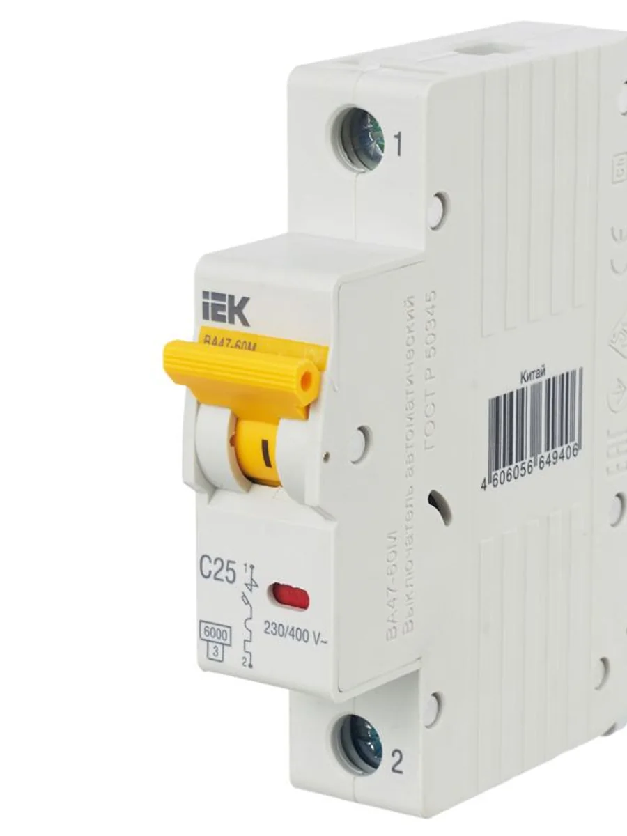 Выключатель автоматический модульный 1п C 25А 6кА ВА47-60M KARAT IEK MVA31-1-025-C | KeepBuilding