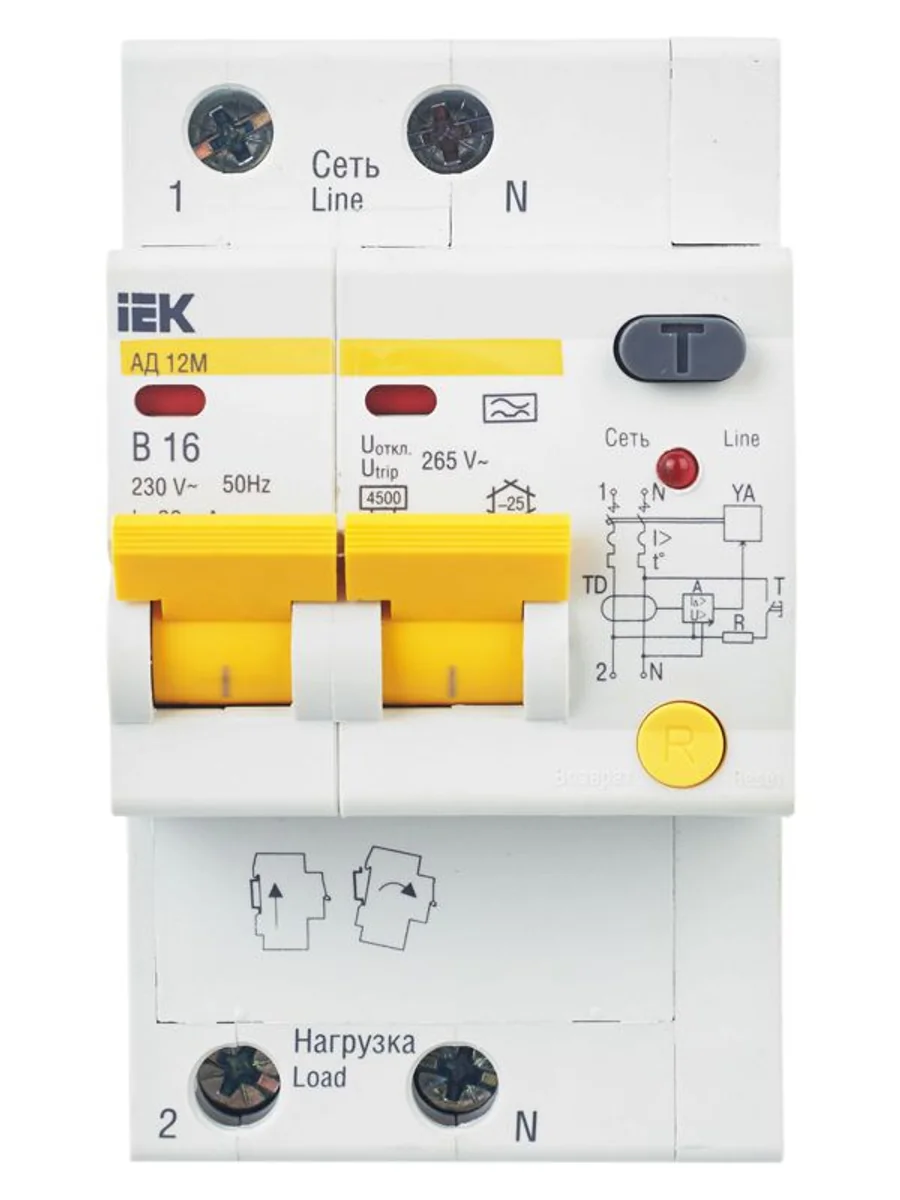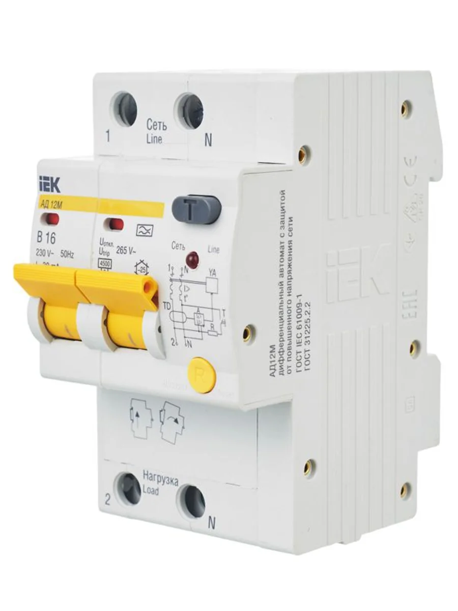 Выключатель автоматический дифференциального тока 2п B 16А 30мА тип A 4.5кА АД-12М KARAT IEK MAD12-2-016-B-030 - купить в KeepBuilding | KeepBuilding