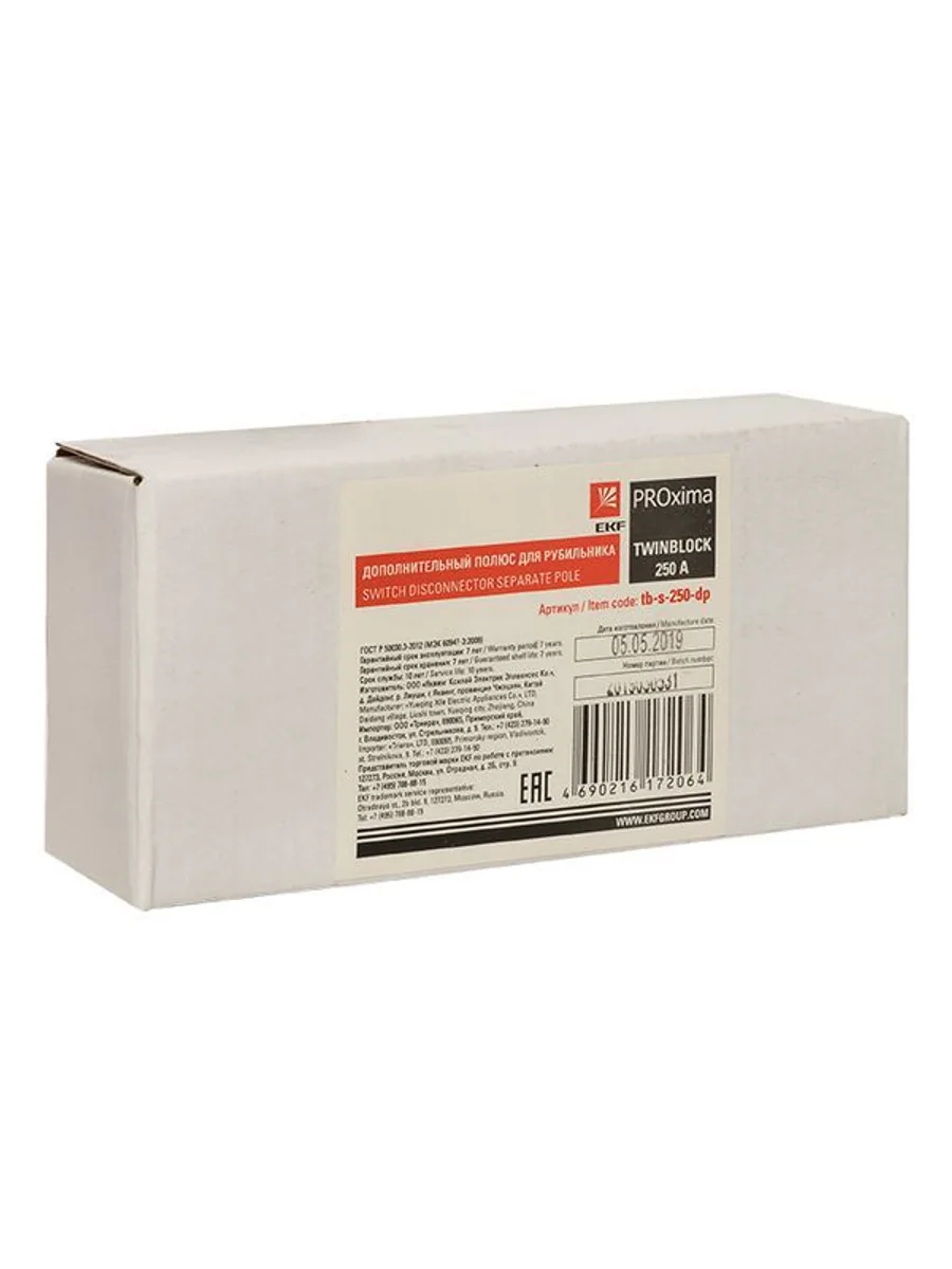 Дополнительный полюс 250А для рубильника TwinBlock EKF. Выключатели-разъединители TwinBlock EKF предназначены для пропускания номинальных токов, включения и отключения электрических цепей номинальным напряжением до 690 В переменного тока частотой 50 и 60 Гц в устройствах распределения электрической энергии. Выключатели-разъединители серии TwinBlock EKF (модели 160-800 А) имеют возможность подключения дополнительного четвертого полюса.