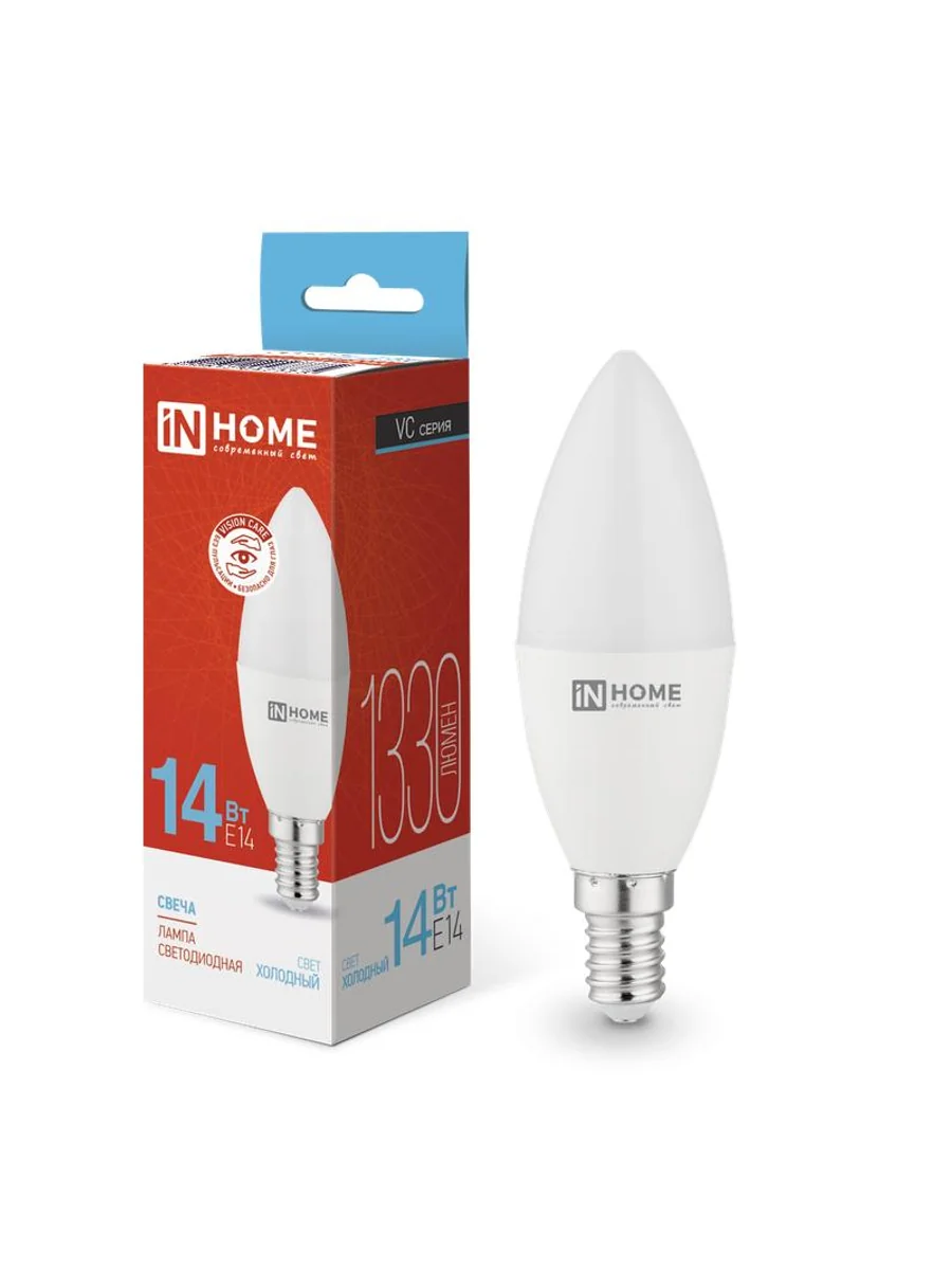 Лампа светодиодная LED-СВЕЧА-VC 14Вт E14 6500К 1330лм IN HOME 4690612047775 - купить в KeepBuilding | KeepBuilding