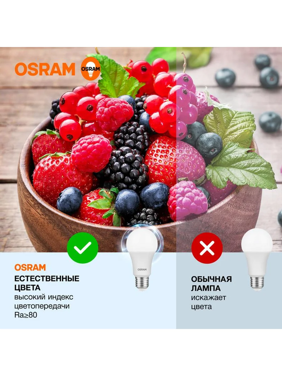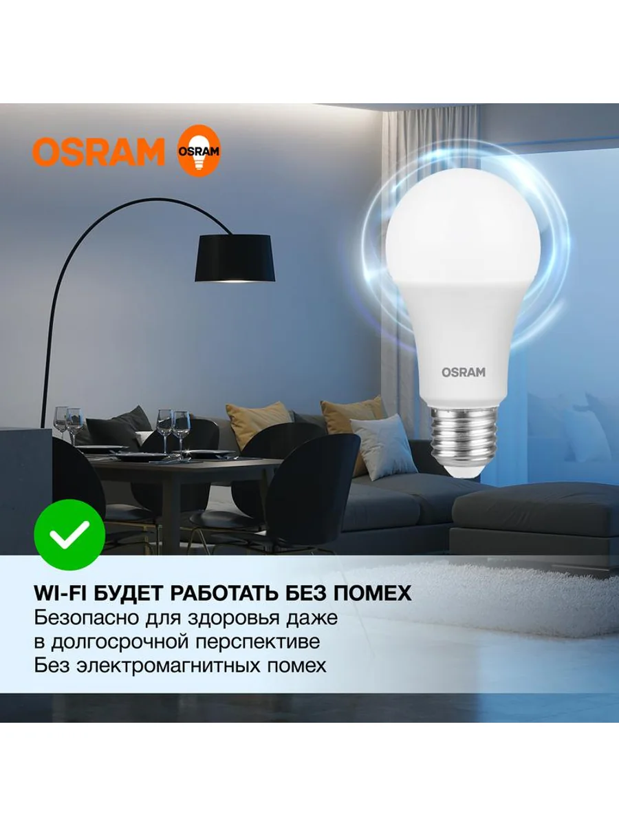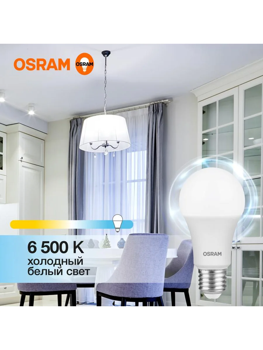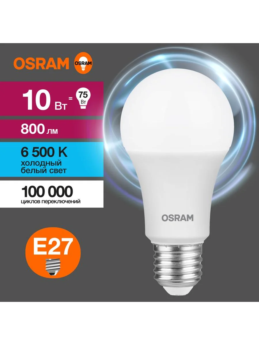 Светодиодные лампы OSRAM - разумная замена традиционным лампам накаливания или галогенным лампам. Светодиодные лампы OSRAM снижают затраты на освещение до 90% при сохранении привычного уровня освещенности. Эта лампа OSRAM серии LED Value выполнена в форме колбы A ("груша") с цоколем E27. Материал колбы - пластик, исполнение - матовое. Световой поток 800 люмен, что соответствует лампе накаливания на 75 Вт. Такие лампы применяются для внутреннего освещения, хотя в закрытом светильнике можно использовать и на улице. Эта лампа излучает холодный белый свет, угол пучка - широкий. Качество света на высоте: низкие пульсации защищают глаза, а высокий индекс цветопередачи позволяет видеть мир в его истинном цвете. Кроме того, лампы OSRAM полностью безопасны для здоровья, поскольку в них нет опасных материалов по европейскому стандарту RoHS, а также они не производят вредных электромагнитных излучений, что подтверждено ЭМС (сертификат электромагнитной совместимости). Лампа проработает долго: срок службы - 25000 часов, 2 года гарантии. Светодиодные лампы OSRAM - умный выбор для здоровья семьи и кошелька!