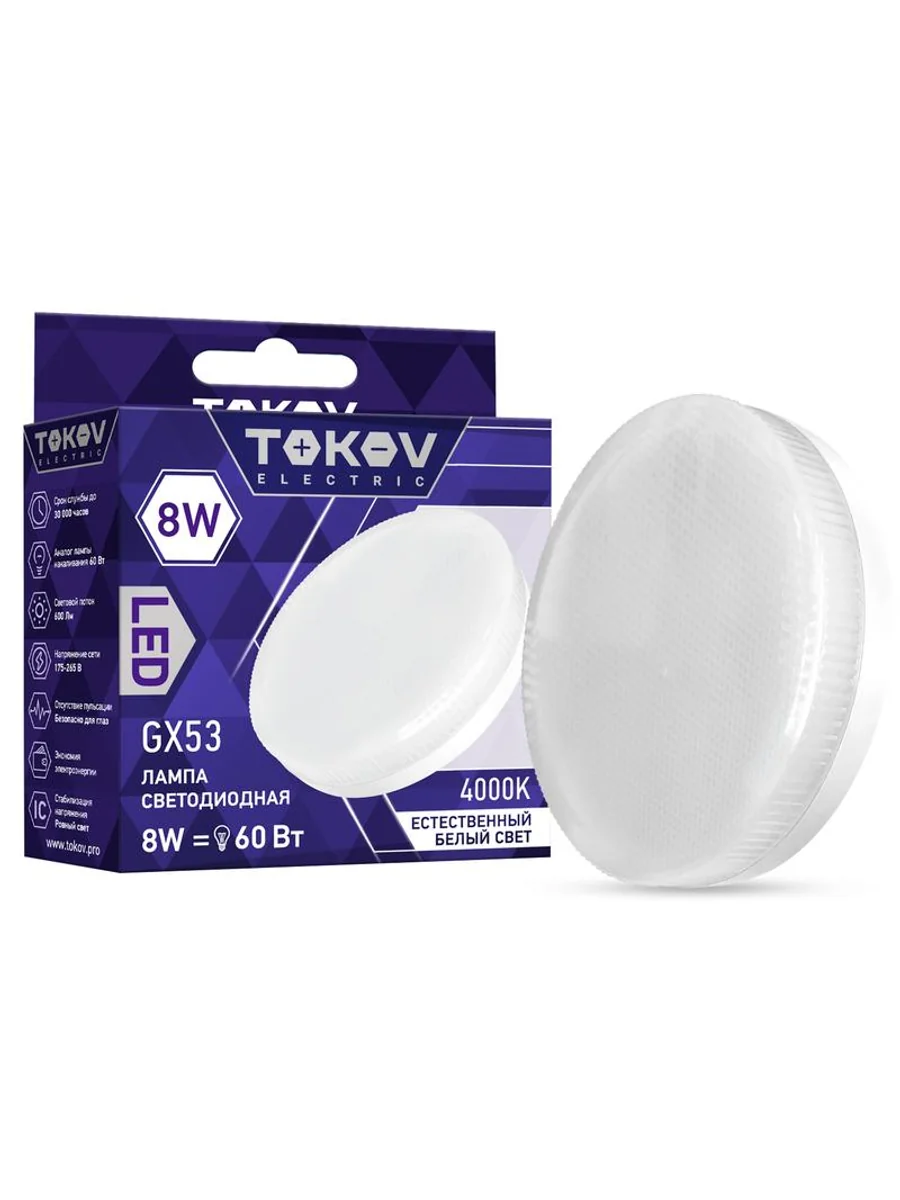 Лампа светодиодная 8Вт Tablet 4000К GX53 176-264В TOKOV ELECTRIC TKE-GX53-8-4K - купить в KeepBuilding | KeepBuilding