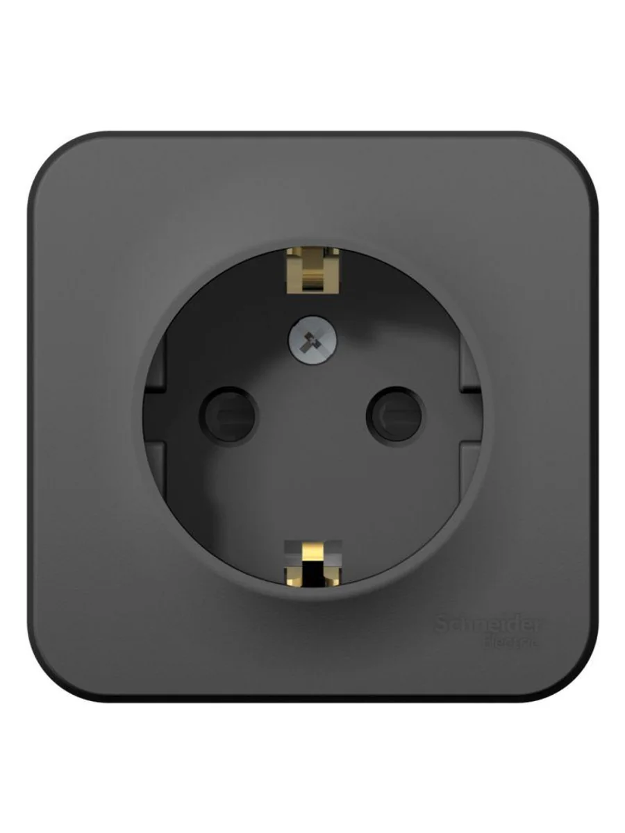 Розетка Systeme Electric (ранее Schneider Electric) BLANCA (антрацит, открытой установки) одноместная с заземлением, шторками и изолирующей пластиной предназначена для сетей до 250В, на ток до 16А. Шторки открываются только при одновременном равномерном давлении в оба отверстия и препятствуют проникновению посторонних предметов. Они обеспечат дополнительную безопасность в доме, где есть дети.