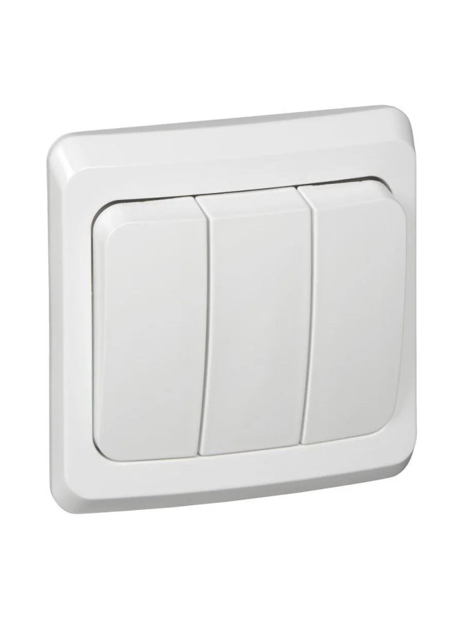 Выключатель Systeme Electric (ранее Schneider Electric) ЭТЮД (белый, скрытой установки) трёхклавишный предназначен для применения в сетях до 250В, на ток до 10А. Трёхклавишный выключатель позволяют управлять тремя источниками света с одной точки. Он прост в установке и удобен применении. Сделано в России.