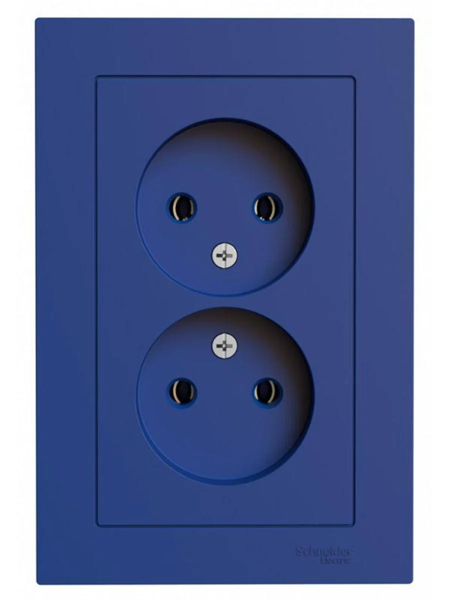 Розетка двойная в сборе Systeme Electric (ранее Schneider Electric) серии AtlasDesign в цвете аквамарин без заземления и без шторок подходит для сетей 250 В, на ток 16 А. Лицевые детали из качественного ABS-пластика, устойчивого к царапинам и УФ-излучению. Двойная розетка позволяет подключить два устройства в одном месте. Изделие поставляется в комплекте с рамкой того же цвета.