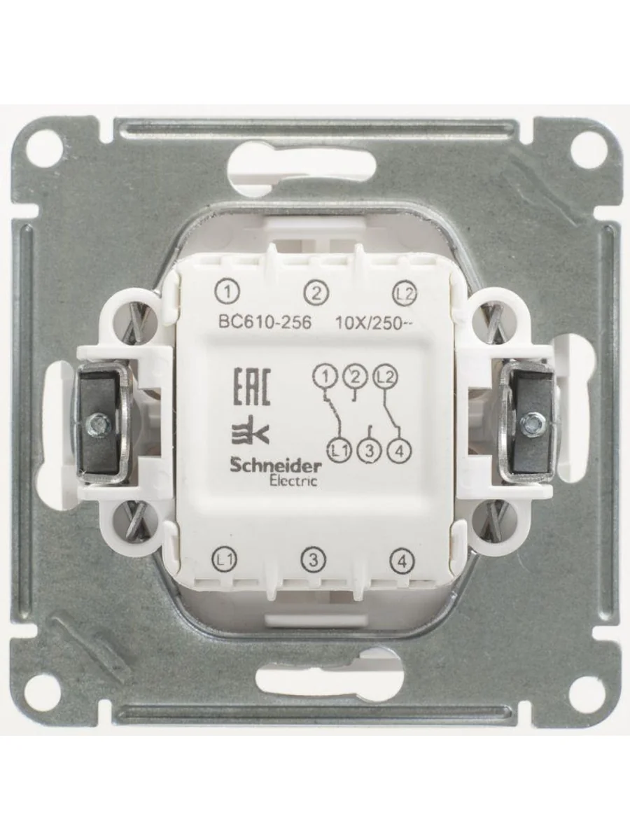 Механизм Systeme Electric (ранее Schneider Electric) W59 (цвет белый) переключателя 2-клавишного с подсветкой подходит для сетей 250 В, на ток до 10 А. - Переключатель позволяет управлять одним источником света из двух точек. - Серебряные контактные группы выключателей обеспечивают надёжный электрический контакт и пожаробезопасность. - Корпус изделия выполнен из высококачественного ABS-пластика.