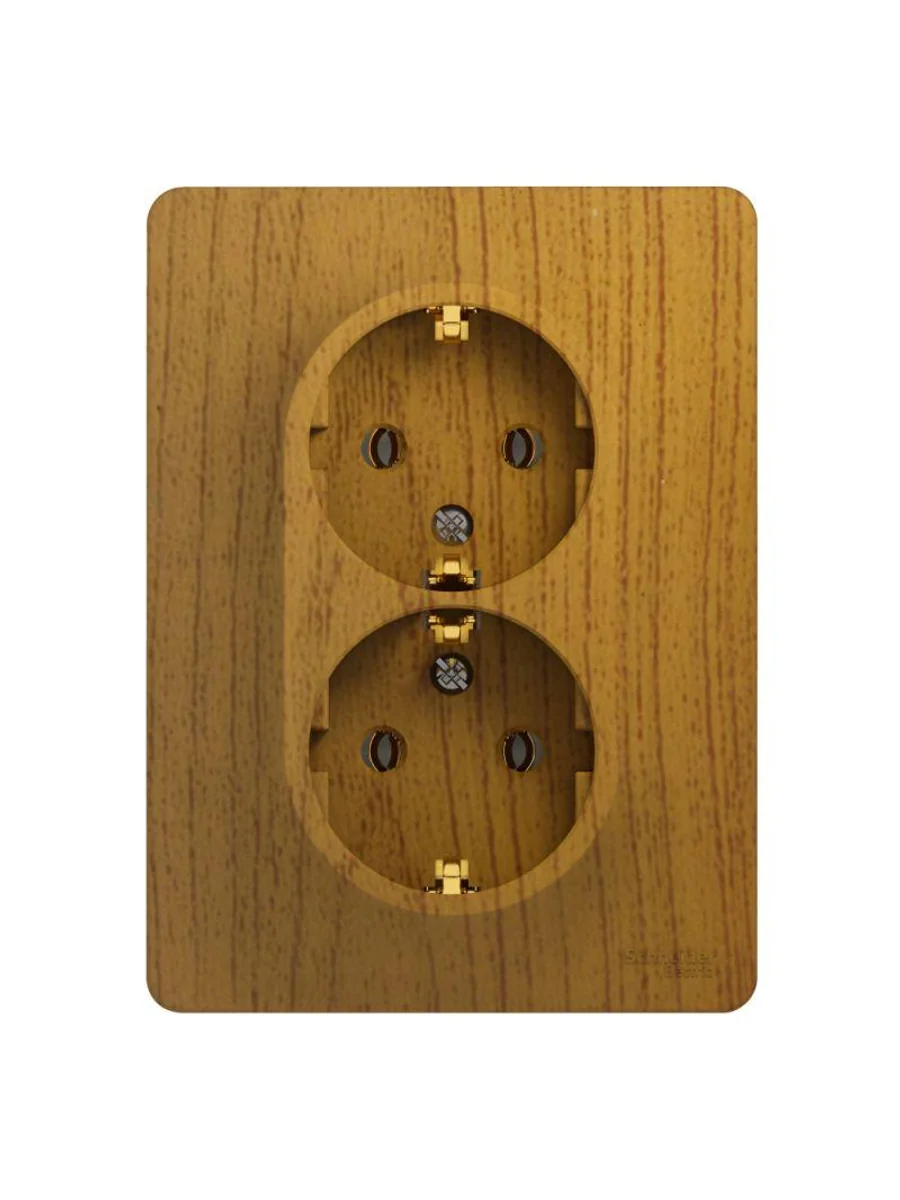 Розетка двойная Systeme Electric (ранее Schneider Electric) серии Glossa (в сборе, цвет дерево дуб) с заземлением, без шторок подходит для сетей 250 В, на ток 16 А. - Заземляющий контакт обеспечивает дополнительную защиту от удара электрическим током. При наличии заземления электрический потенциал уходит в землю, защищая человека. - Выполнен из материала PС+ASA, стойкого к УФ-излучению и появлению царапин. - Двойная розетка позволяет подключить два устройства в одном месте.