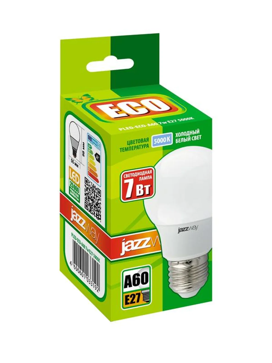 Лампа светодиодная PLED-ECO 7Вт A60 грушевидная 5000К холод. бел. E27 570лм 230В JazzWay 1033192 - купить в KeepBuilding | KeepBuilding