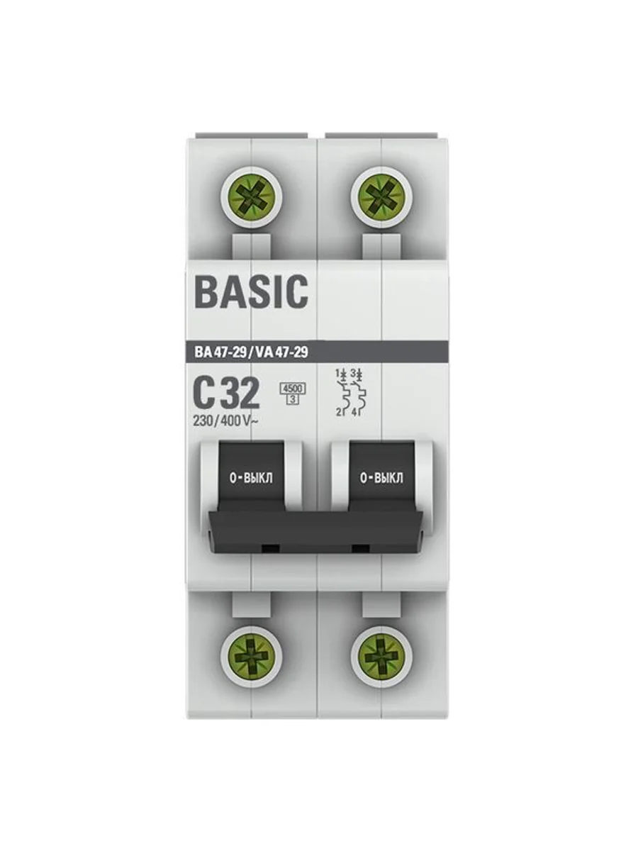 Выключатель автоматический модульный 2п C 32А 4.5кА ВА 47-29 Basic EKF mcb4729-2-32C - купить в KeepBuilding | KeepBuilding