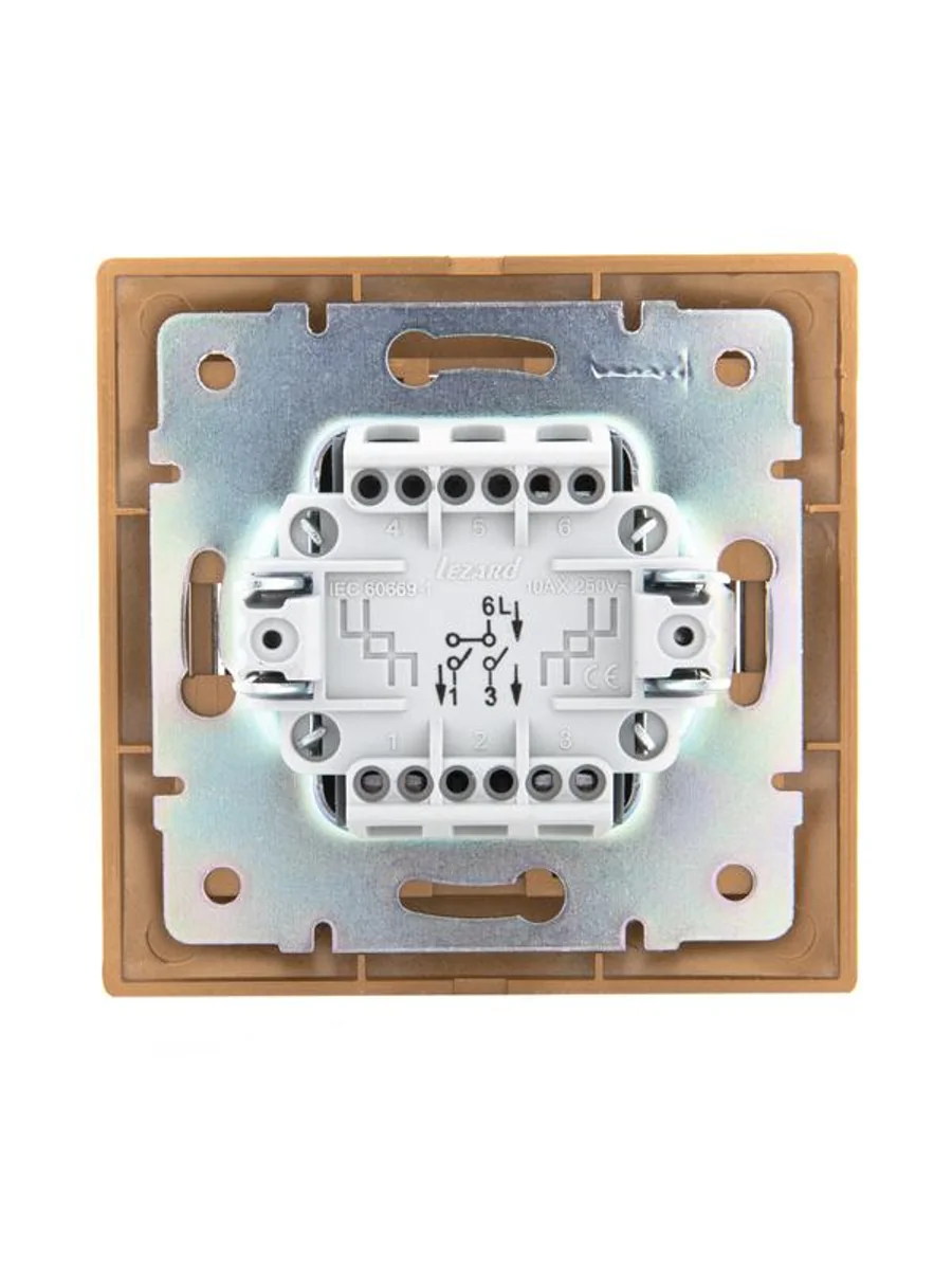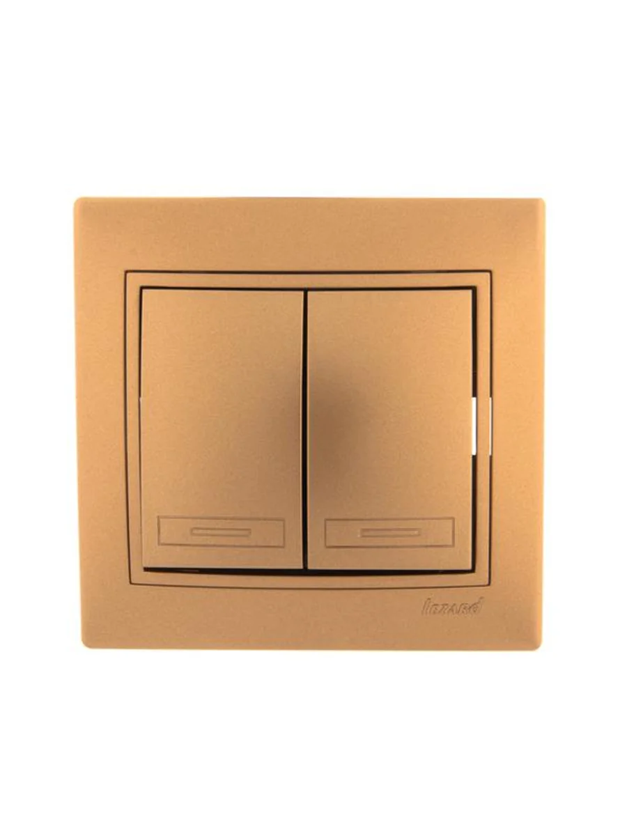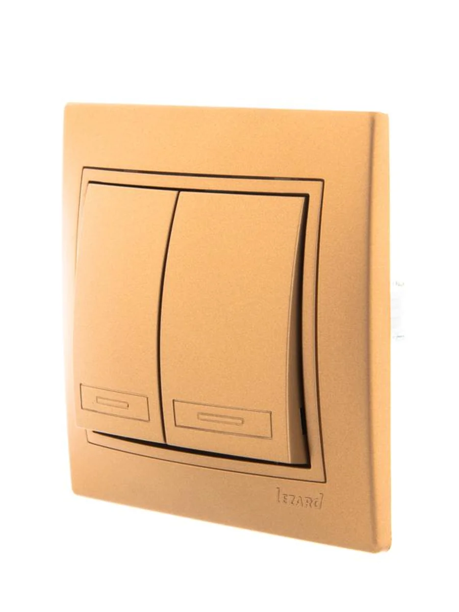 Выключатель 2-кл. СП Mira 10А IP20 со вставкой зол. метал. LEZARD 701-1313-101 - купить в KeepBuilding | KeepBuilding
