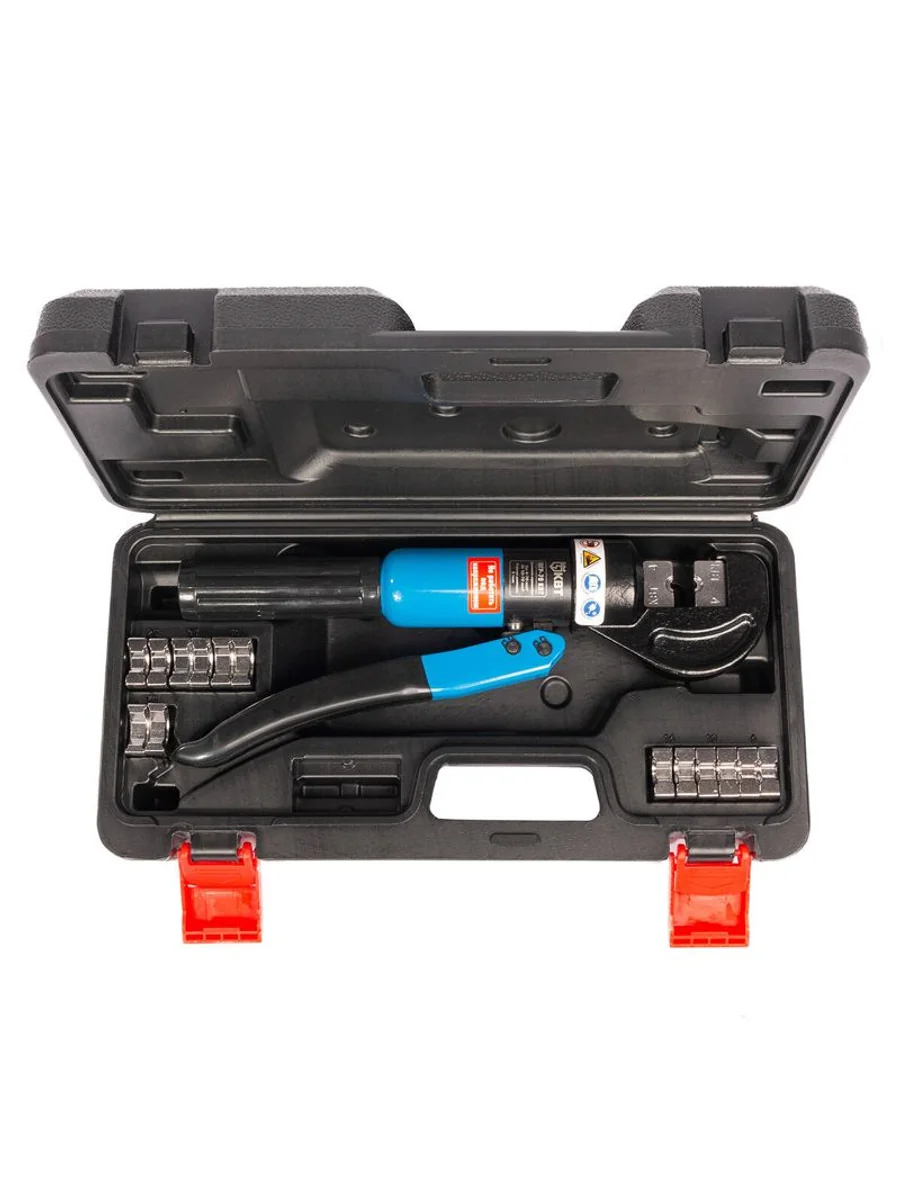• Предназначены для опрессовки медных и алюминиевых неизолированных трубчатых наконечников • В комплекте: • ручной гидравлический пресс ПГР-70 • набор из 8 сменных матриц • ремкомплект (уплотнительные кольца) • прочный пластиковый кейс • Диапазон сечений: • кабельные наконечники 4–70 мм2 • C-образная кованая рабочая голова • Безлюфтовые матрицы с фиксирующими штифтами • Клапан ручного сброса давления • Максимальное усилие: 5 т • Вес комплекта/инструмента: 2.70/1.70 кг • Легкий и компактный инструмент • Длина: 295 мм • Габариты кейса: 350х180х80 мм
