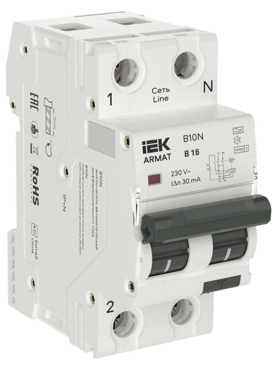 Выключатель автоматический дифференциального тока 2п (1P+NP) B 16 30мА тип A АВДТ B10N 36мм ARMAT IEK AR-B10N-1N-B016A030 - купить в KeepBuilding | KeepBuilding