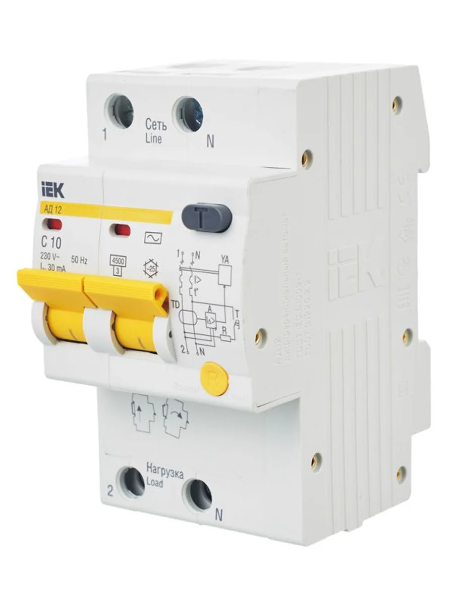 Выключатель автоматический дифференциального тока 2п C 10А 30мА тип AC 4.5кА АД-12 KARAT IEK MAD10-2-010-C-030 - купить в KeepBuilding | KeepBuilding