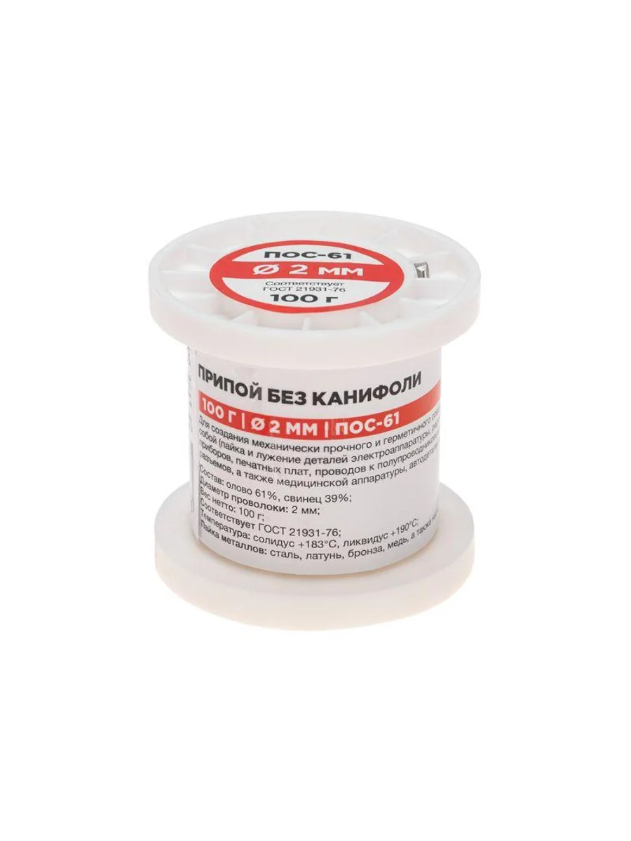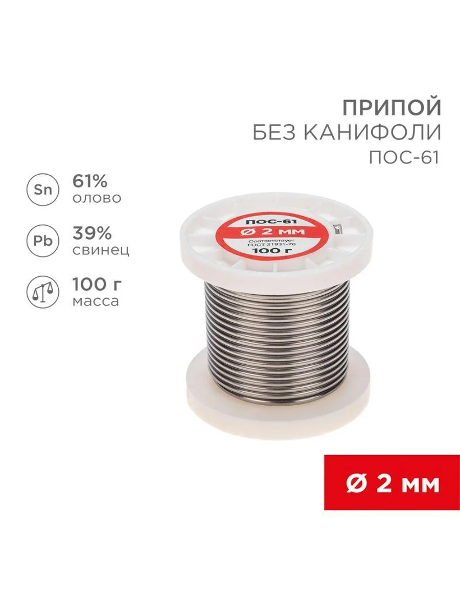 Припой катушка ПОС-61 без канифоли (d2.0мм 100гр) Rexant 09- | KeepBuilding