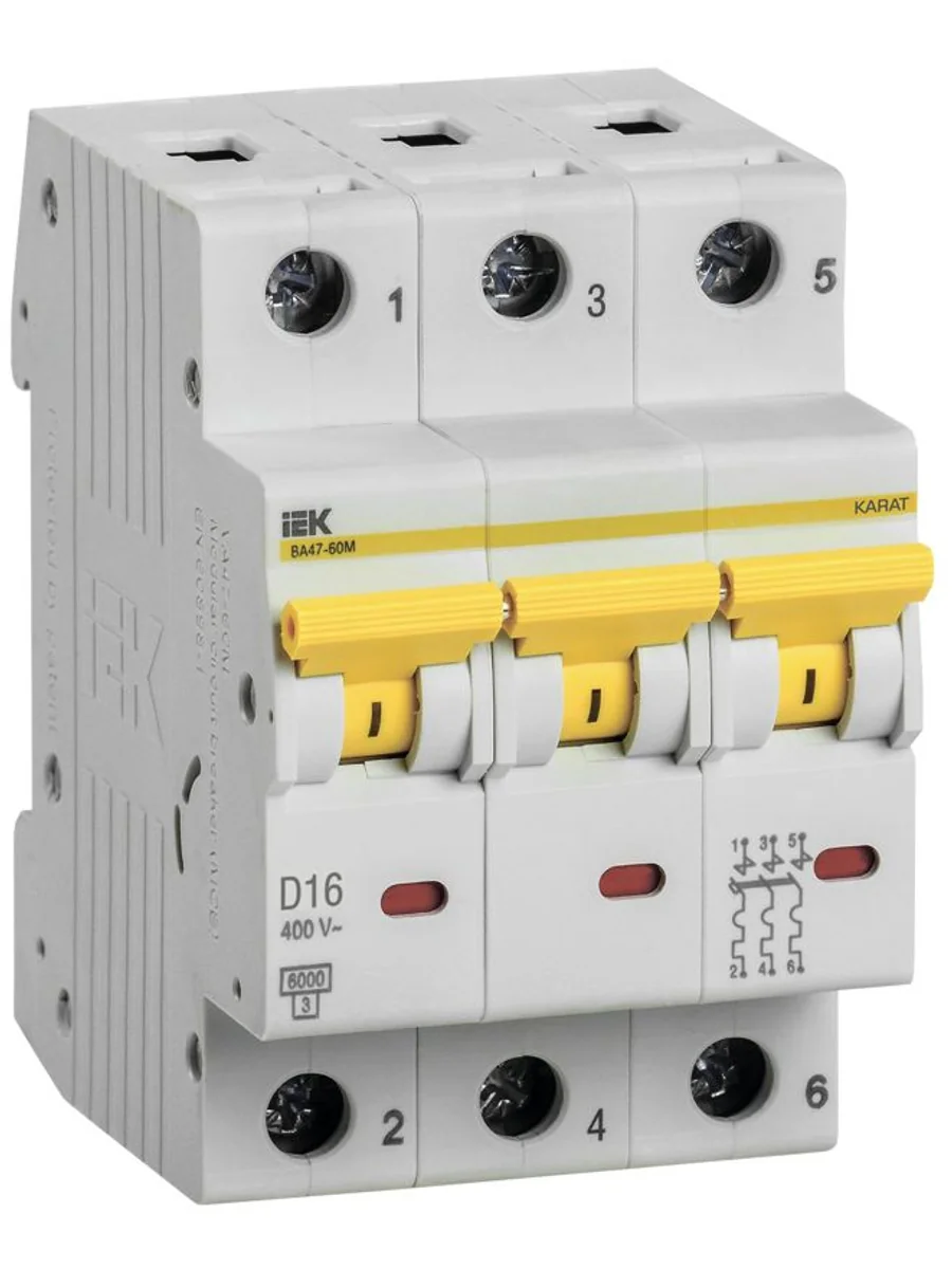 Выключатель автоматический модульный 3п D 16А 6кА ВА47-60M KARAT IEK MVA31-3-016-D - купить в KeepBuilding | KeepBuilding