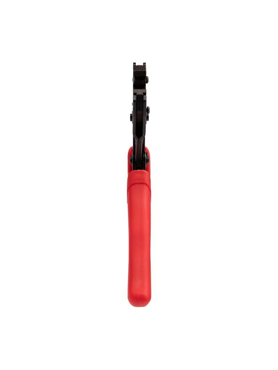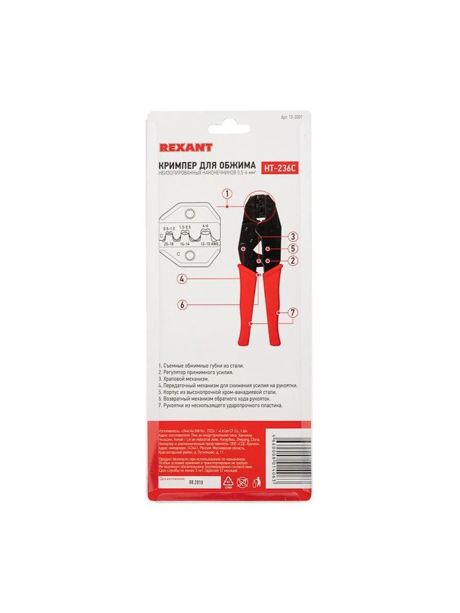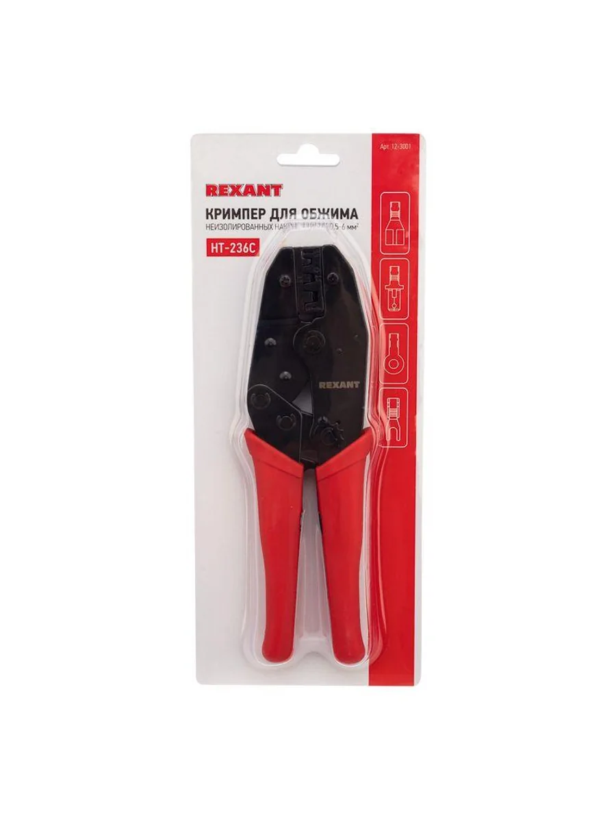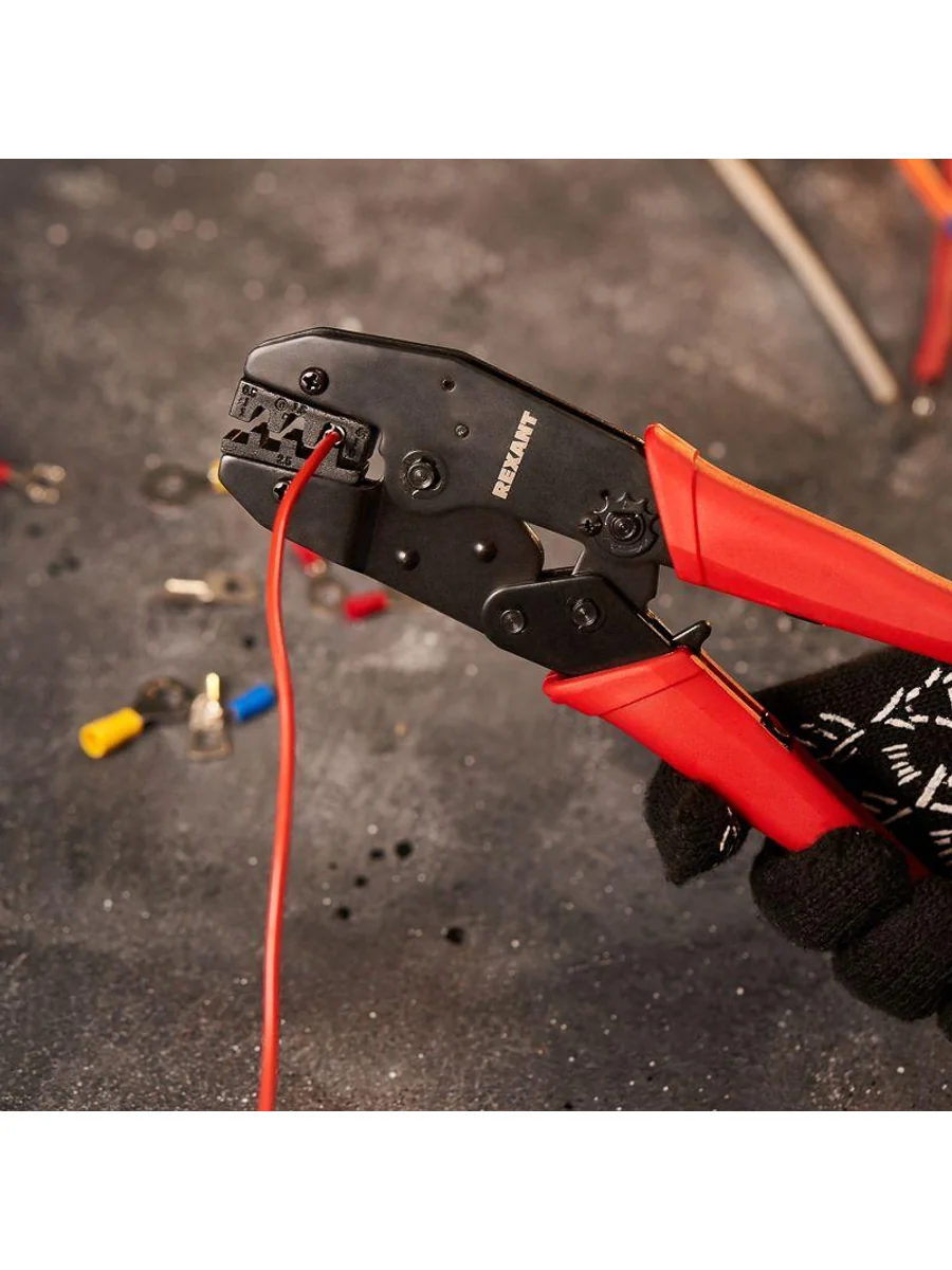 Кримпер HT-236С предназначен для обжима неизолированных клемм сечением 0,5-6 мм2. Корпус инструмента изготовлен из высокопрочной закаленной инструментальной стали с воронением, что обеспечивает длительный срок службы и устойчивость к механическим нагрузкам. Двухконтурная матрица позволяет совершать обжим как по изоляции, так и по жиле. Съемные обжимные губки, изготовленные методом микролитья, гарантируют идеальное соответствие размерам и форме контактов. Передаточный механизм снижает нагрузку на руку при работе. Возвратный механизм автоматически возвращает ручки в исходное положение после каждого цикла обжима. Регулятор силы сжатия позволяет настроить оптимальное усилие обжима для разных типов клемм. Храповой механизм обеспечивает качественную опрессовку без преждевременного разжатия ручек. Нескользящие рукоятки выполнены из плотного синтетического материала, что делает работу комфортной и безопасной даже при длительном использовании.