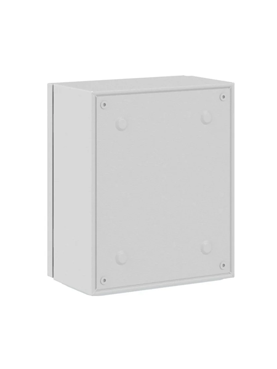Навесные корпуса ST предназначены для систем автоматизации и распределения электроэнергии. Корпус, дверь, фланец изготавливаются из стали толщиной 1,2 мм с атмосферостойким порошковым покрытием, цвет RAL7035. Монтажная плата - из оцинкованной стали толщиной 1,8 мм. Степень защиты IP66, ударопрочность IK10, сейсмостойкость 9 баллов по шкале MSK-64, климатическое исполнение УХЛ1, ОМ2, ОМ3, группа горючести Г1. Комплект поставки: корпус, дверь реверсивная, монтажная плата с двунаправленной разметкой, поворотный замок 1 шт., сплошной фланец для ввода кабеля 1 шт., комплект заземления без проводов, монтажные аксессуары. Габариты 300x250x150 (ВхШхГ) мм.
