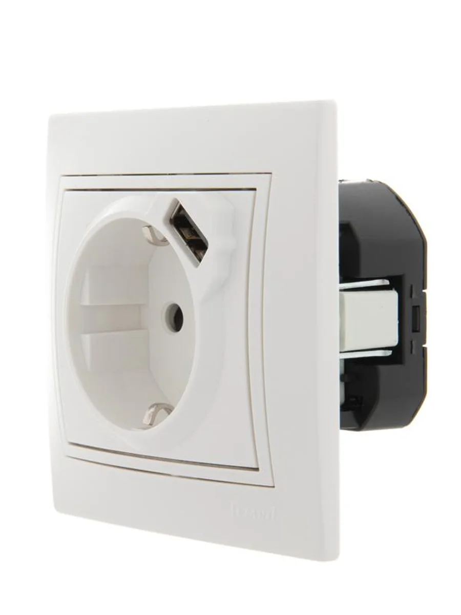 Розетка 1-м СП Mira 16А с заземл. + USB разъем бел. LEZARD 701-0202-181 - купить в KeepBuilding | KeepBuilding