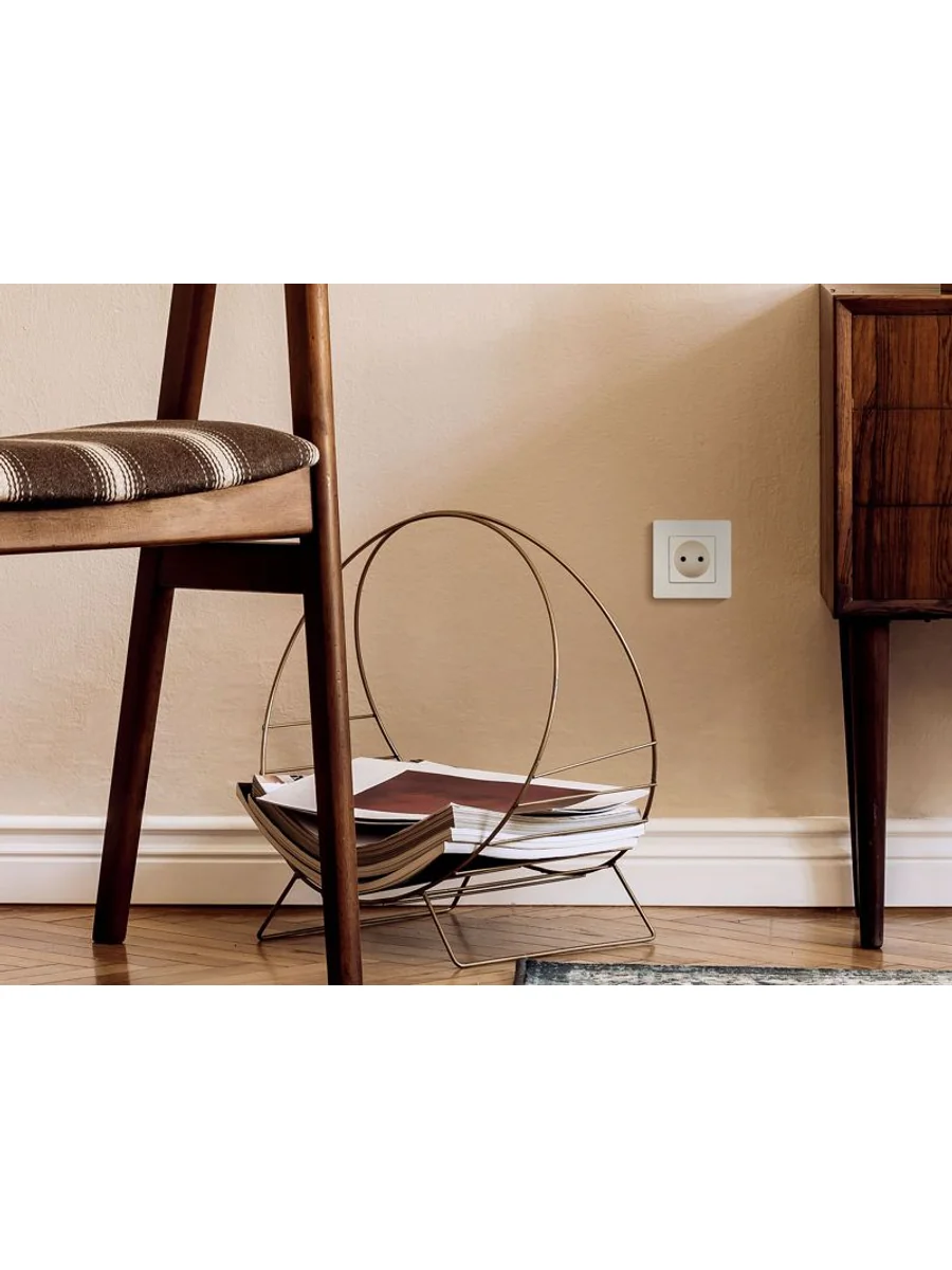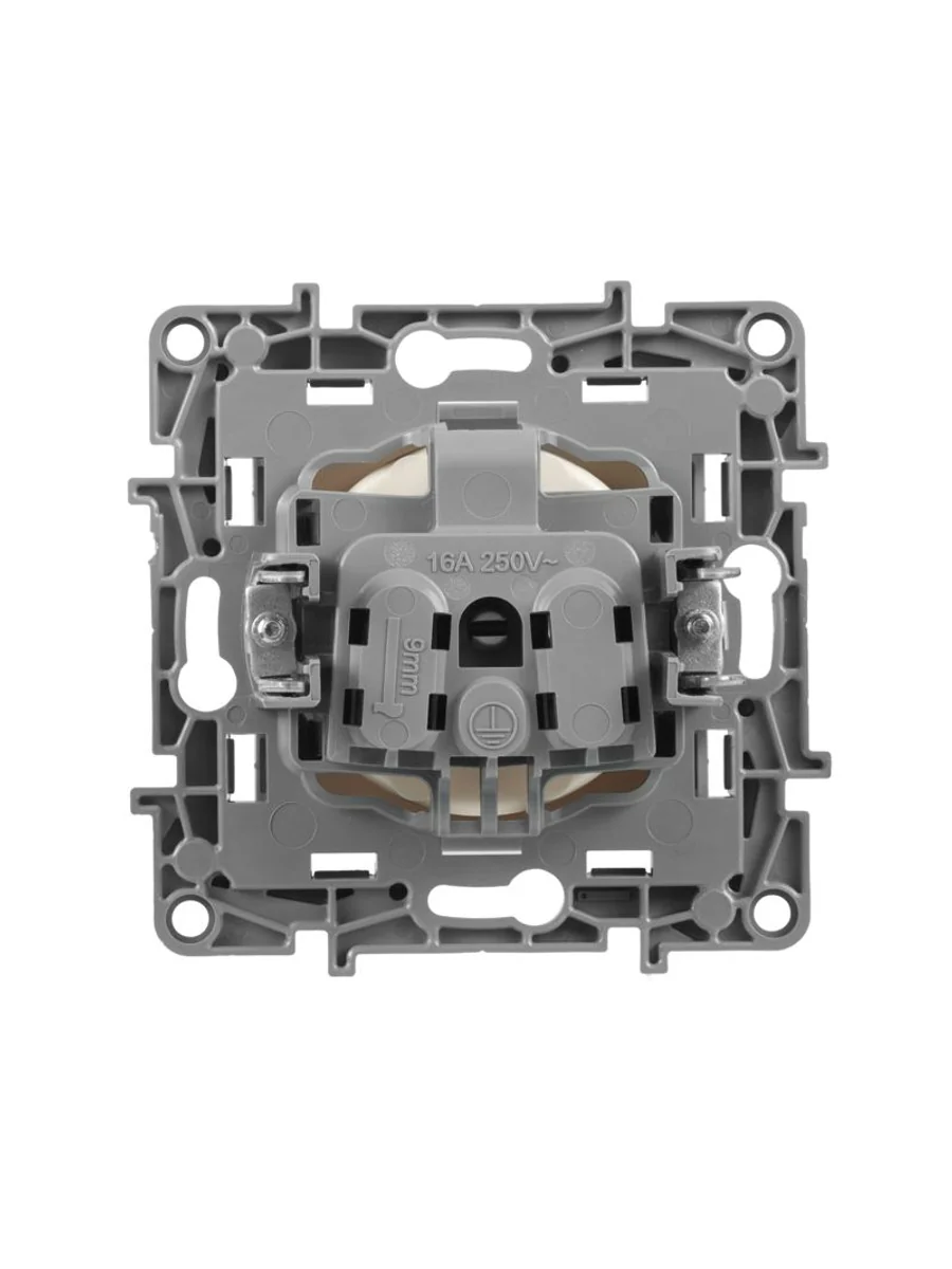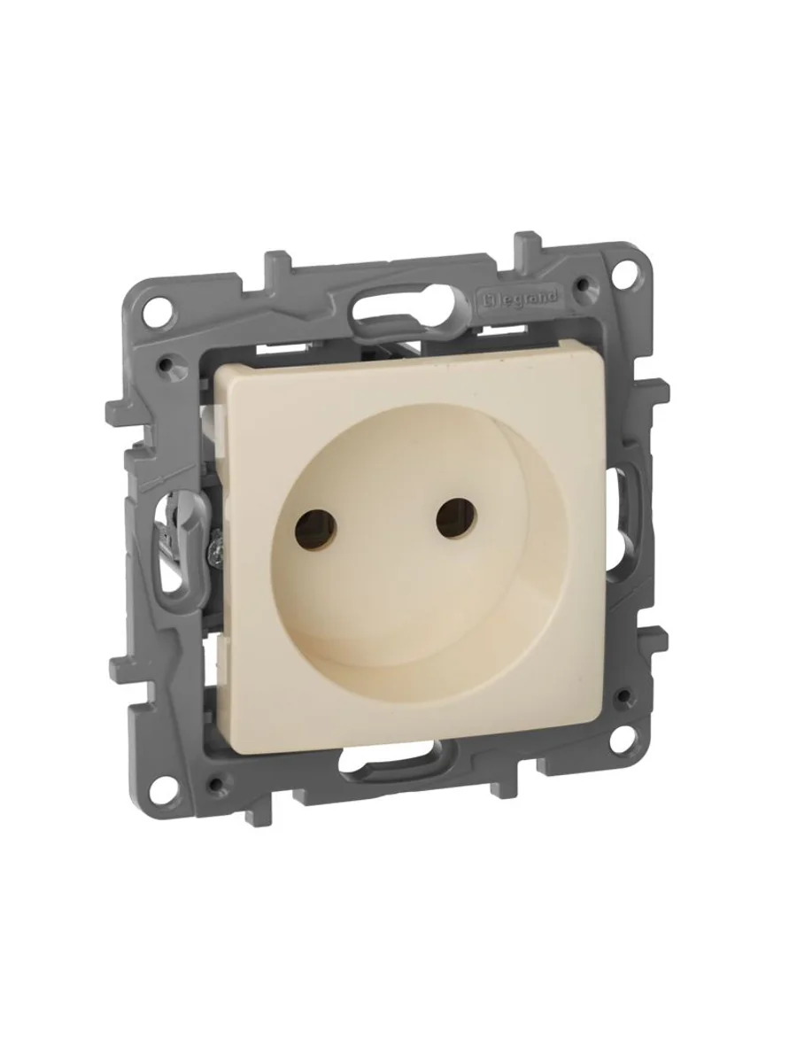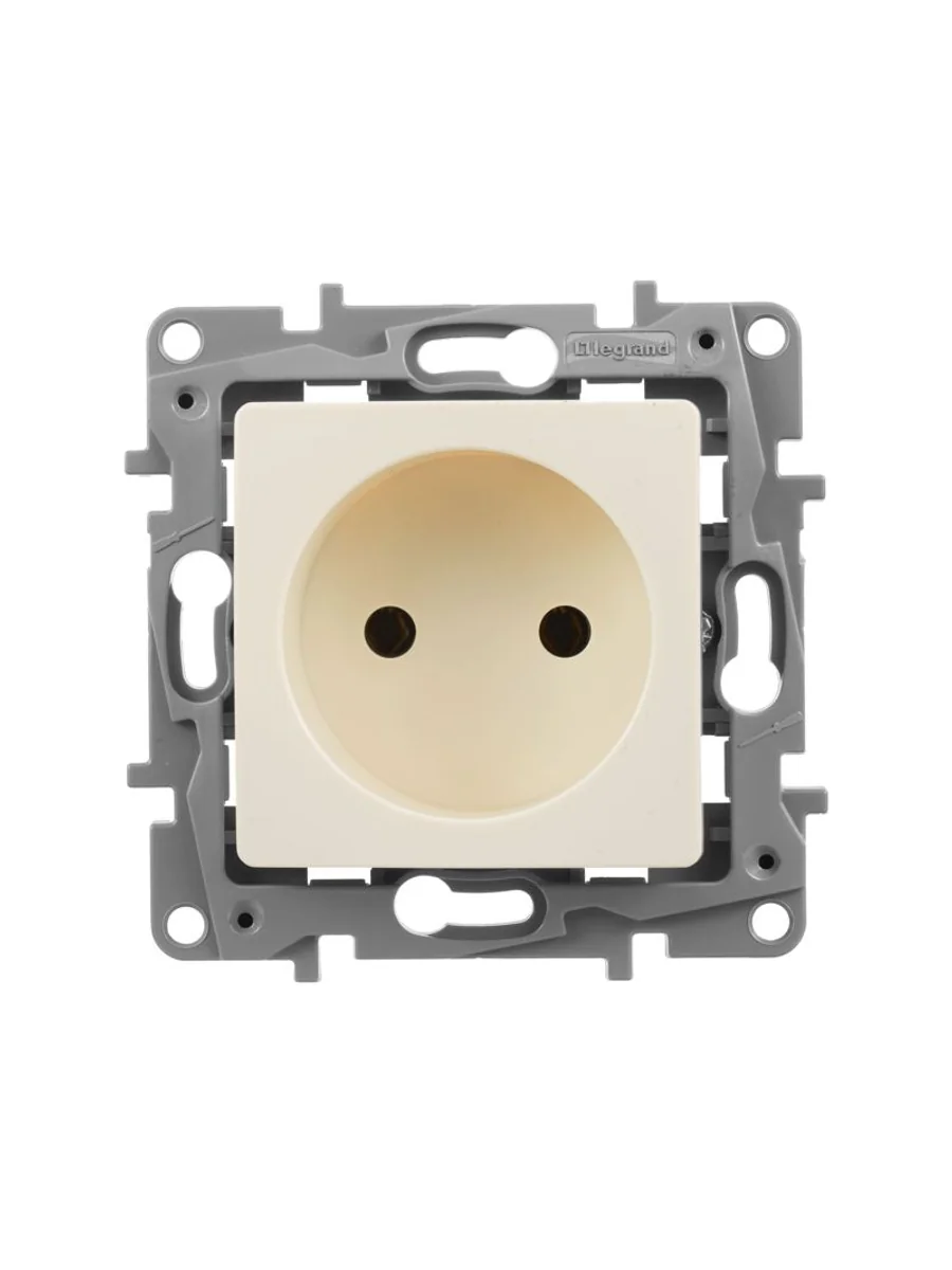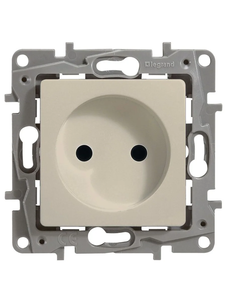 Розетка без заземления ETIKA для скрытого монтажа. Максимальный ток 16 А, максимальная мощность 3680 Вт. Применяется в зданиях с проводкой без заземления (без защитного проводника).