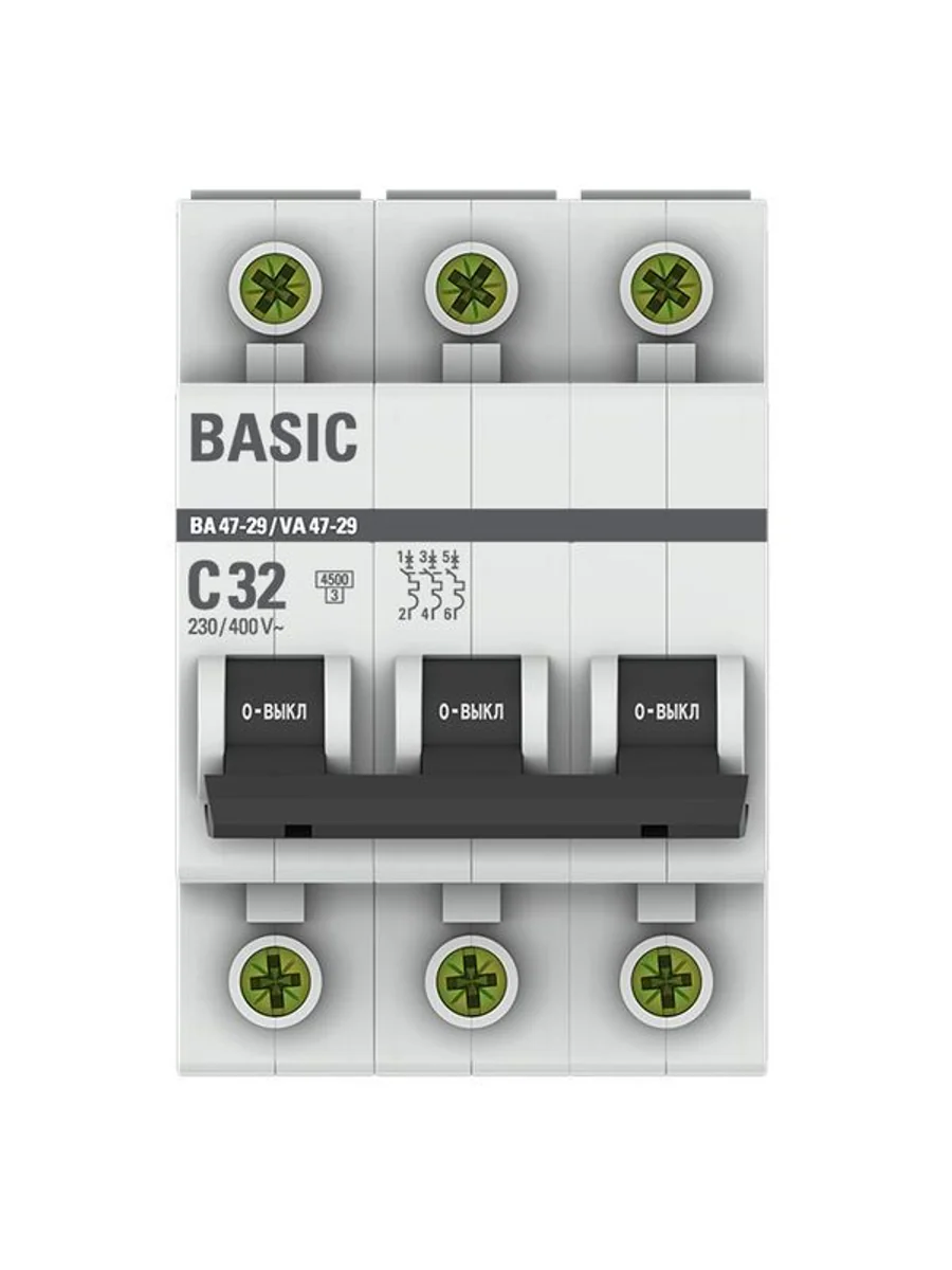 Выключатель автоматический модульный 3п C 32А 4.5кА ВА 47-29 Basic EKF mcb4729-3-32C