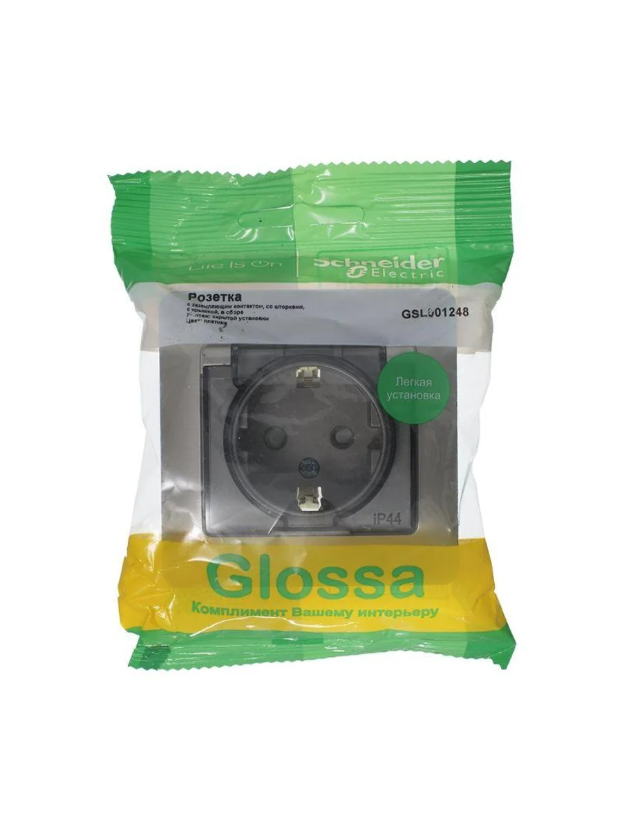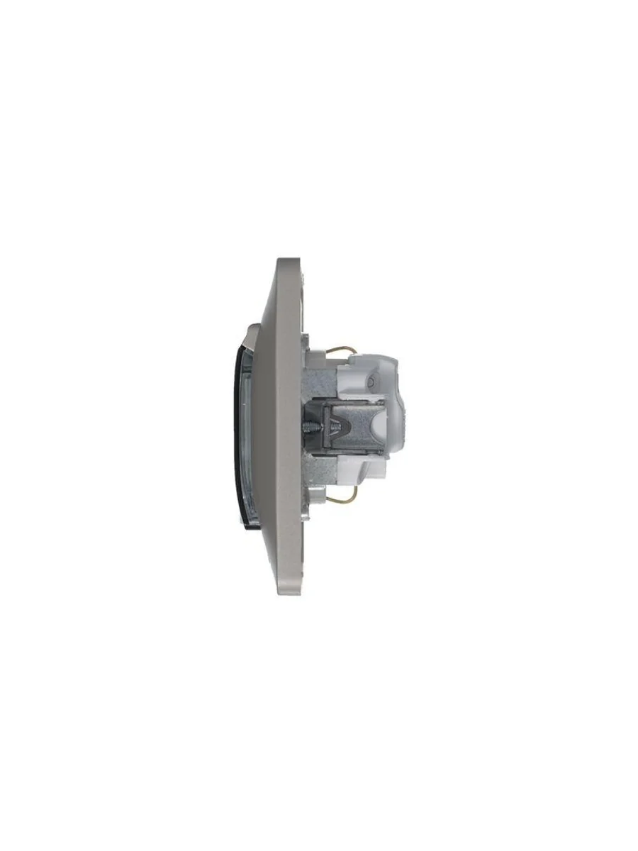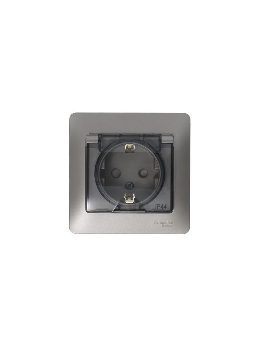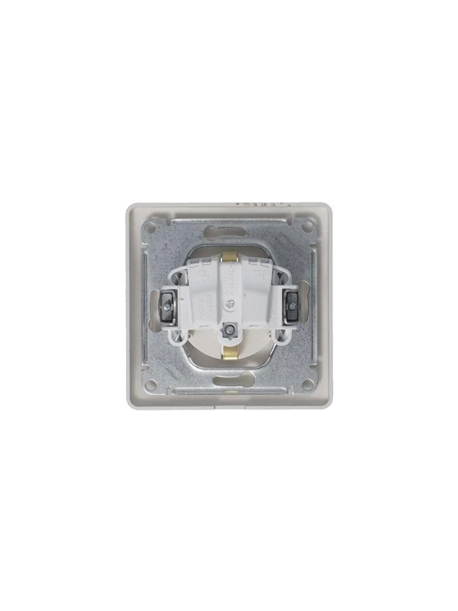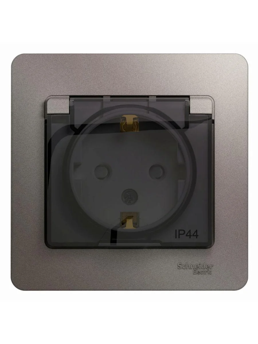 Розетка Systeme Electric (ранее Schneider Electric) серии Glossa (в сборе, цвет платина) одинарная с заземлением, шторками и крышкой подходит для сетей 250 В, на ток 16 А. - Изделие со степенью защиты IP44 обеспечит безопасность использования в ванной и на кухне. - Заземляющий контакт обеспечивает дополнительную защиту от удара электрическим током. При наличии заземления электрический потенциал уходит в землю, защищая человека. - Выполнен из материала PС+ASA, стойкого к УФ-излучению и появлению царапин.