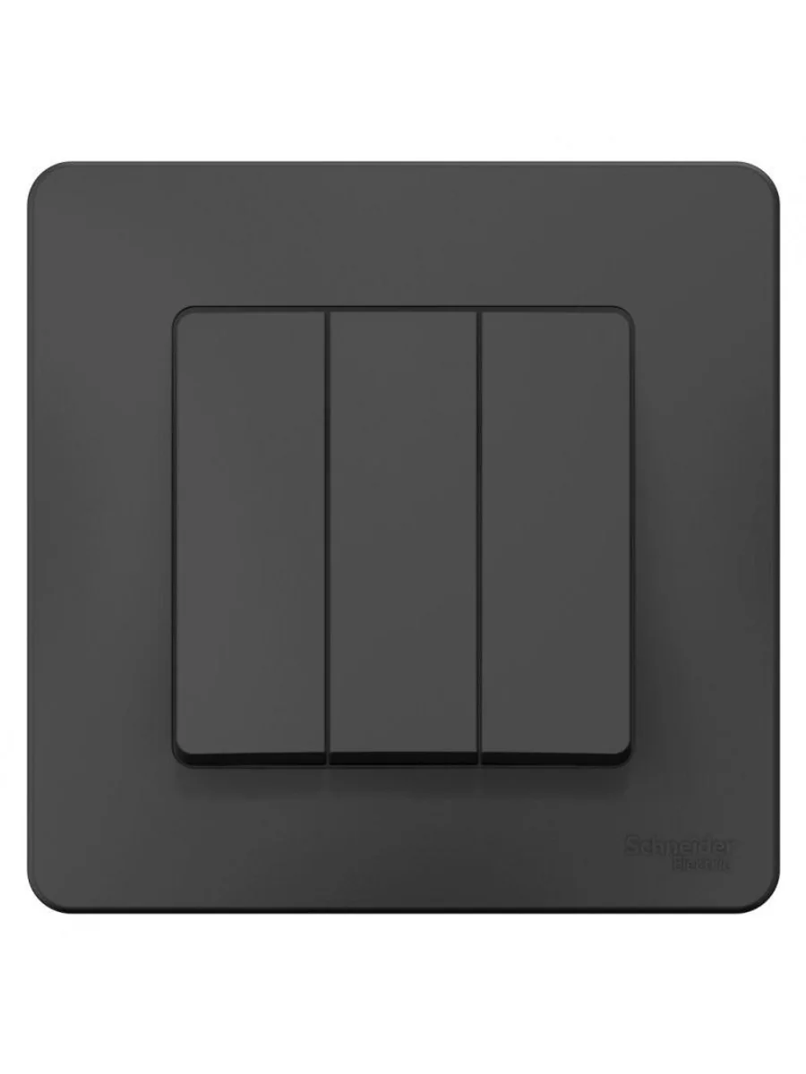 Выключатель Systeme Electric (ранее Schneider Electric) BLANCA (антрацит, скрытой установки) трехклавишный предназначен для сетей до 250В, на ток до 10А. Трехклавишный выключатель позволяет управлять тремя источниками света из одной точки.
