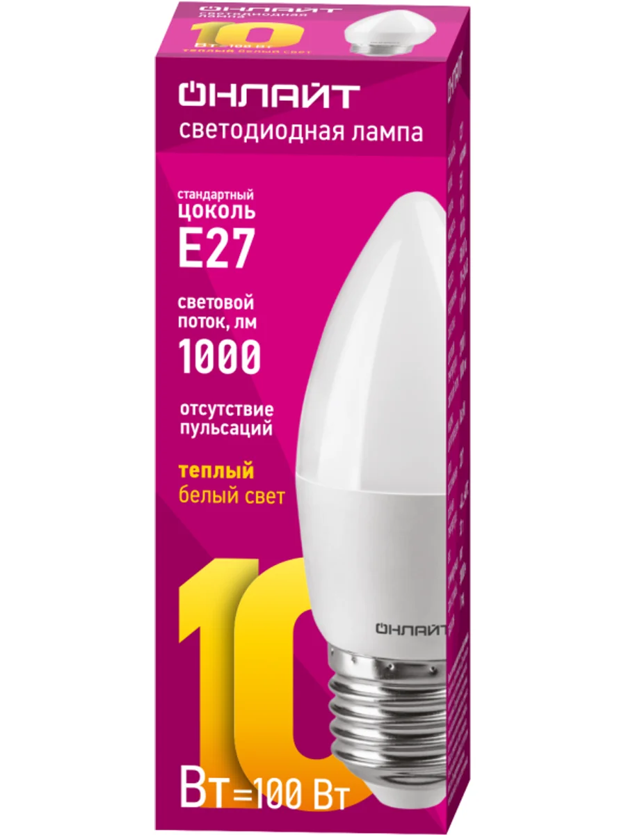 Лампа светодиодная 61 959 OLL-C37-10-230-2.7K-E27-FR 10Вт ОНЛАЙТ 61959 - купить в KeepBuilding | KeepBuilding
