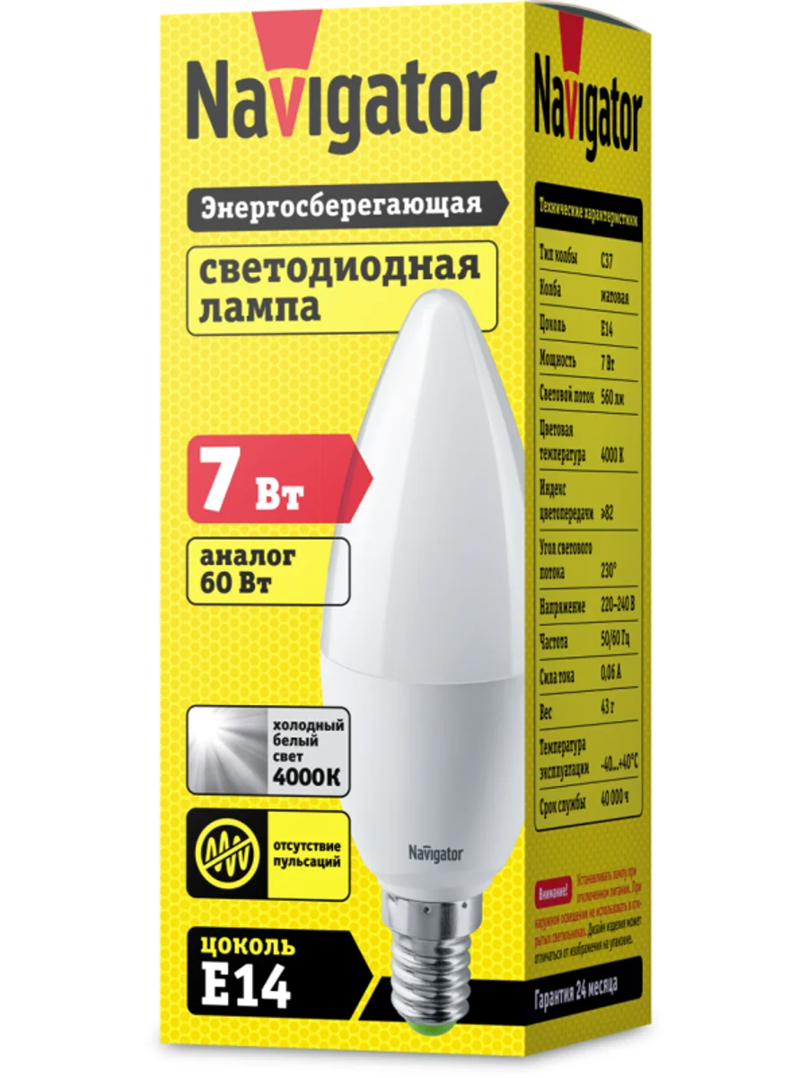 Лампа светодиодная 94 492 NLL-C37-7-230-4K-E14-FR 7Вт свеча 4000К нейтр. бел. E14 560лм 176-264В Navigator 94492 - купить в KeepBuilding | KeepBuilding