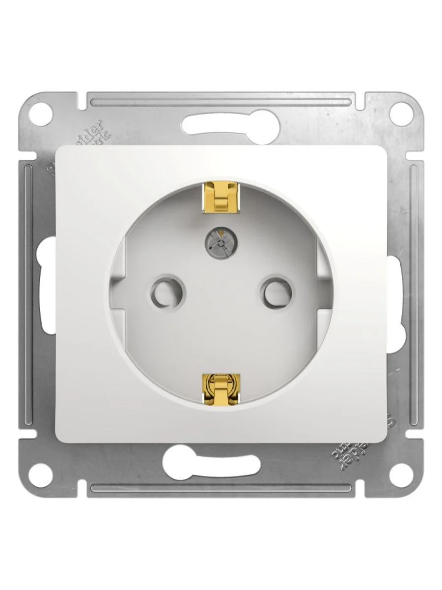 Механизм Systeme Electric серии Glossa (цвет белый) розетки одинарной с заземлением и шторками подходит для сетей 250 В, на ток 16 А. - Заземляющий контакт обеспечивает дополнительную защиту от удара электрическим током. При наличии заземления электрический потенциал уходит в землю, защищая человека. - Выполнен из материала PС+ASA, стойкого к УФ-излучению и появлению царапин. - Эргономичные клеммы розеток расположены в один ряд (ранее Schneider Electric MGU5.037.18ZD, NU503718).