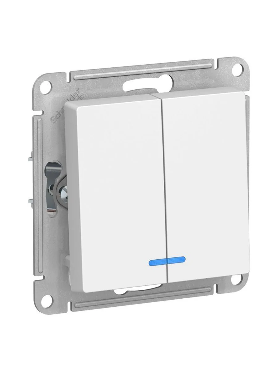 Механизм Systeme Electric (ранее Schneider Electric) серии AtlasDesign в цвете белый выключателя 2-клавишного c подсветкой подходит для сетей 250 В, на ток 10 А. Пластик с ионами серебра в белом цвете обеспечивает антибактериальный эффект. Благодаря светодиодной подсветке синего цвета изделие легко найти в темноте. Двухклавишный выключатель позволяет управлять двумя источниками света с одной точки. Лицевые детали из качественного ABS-пластика, устойчивого к царапинам и УФ-излучению.