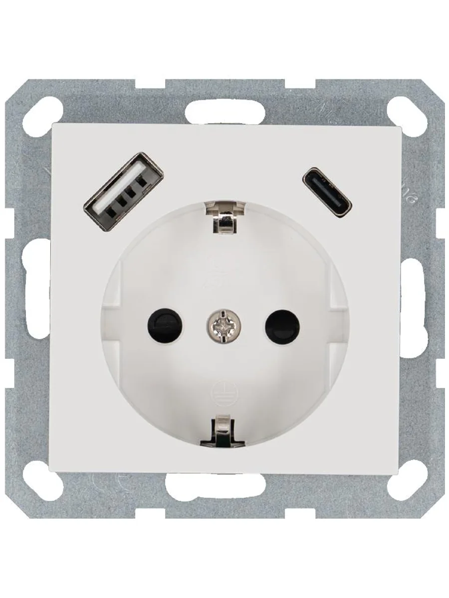 Розетка Shuko 16А с заземл. защ. шторки с 2-мя заряд. устройствами USB тип A+C 25Вт механизм бел. глянцевый Jasmart G5501USB-25W - купить в KeepBuilding | KeepBuilding