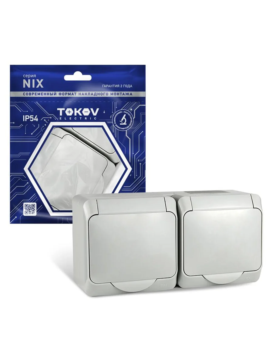 Розетка 2-м ОП Nix 16А IP54 250В с заземл. с крышкой сер. TOKOV ELECTRIC TKE-NX-R2Z-C06-IP54 - купить в KeepBuilding | KeepBuilding