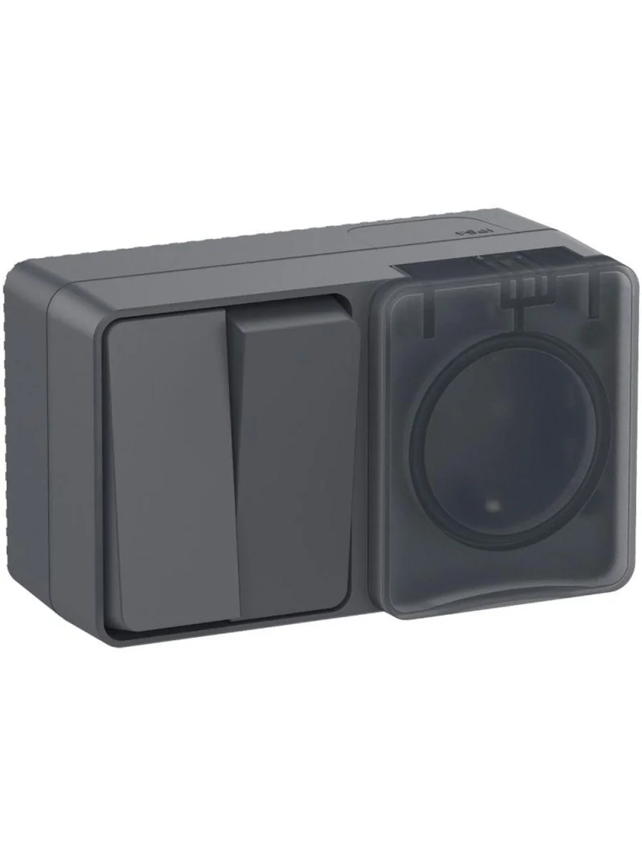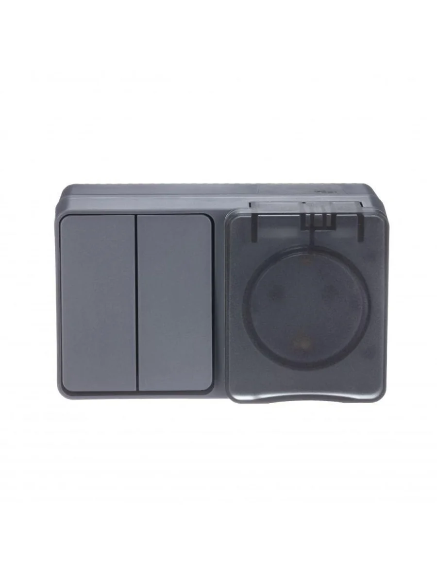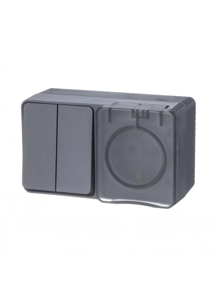 Блок для открытого монтажа из розетки с заземлением со шторками (16А, 250В) и 2-клавишного выключателя (10А). Степень защиты IP:54, Степень защиты IK: IK08. Продукция AtlasDesign Profi54 созданы специально для тех мест, где требуется повышенная защита от влаги и пыли. Уютная веранда в загородном доме, уличное кафе, любимый гараж или мастерская – выключатели и розетки будут обеспечивать надежную защиту и радовать глаз современным дизайном. Элегантный цвет антрацит гармонично впишется в любую обстановку.