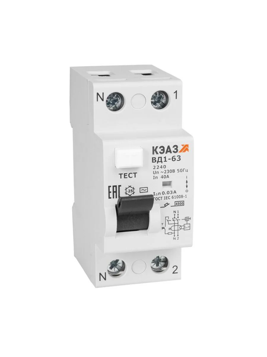 Выключатель дифференциального тока (УЗО) 2п 16А 30мА тип AC ВД1-63 2216 УХЛ4 КЭАЗ 221902 - купить в KeepBuilding | KeepBuilding