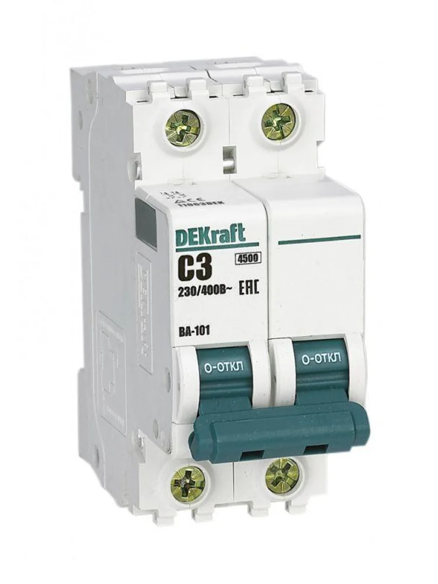 Автоматический выключатель серии ВА-101 Dekraft; 2P; номинальный ток 3 А; характеристика С; отключающая способность 4,5 кА. 5 монолитных заклепок повышают прочность корпуса аппарата. Сплошная лицевая панель обеспечивает безопасность эксплуатации аппарата. Боковые каналы охлаждения повышают стабильность работы при высоких температурах окружающей среды. Есть возможность установки дополнительных аксессуаров с левой стороны устройства. Аппарат на 100% совместим с корпусами Dekraft и Systeme Electric.