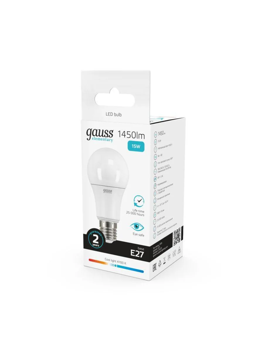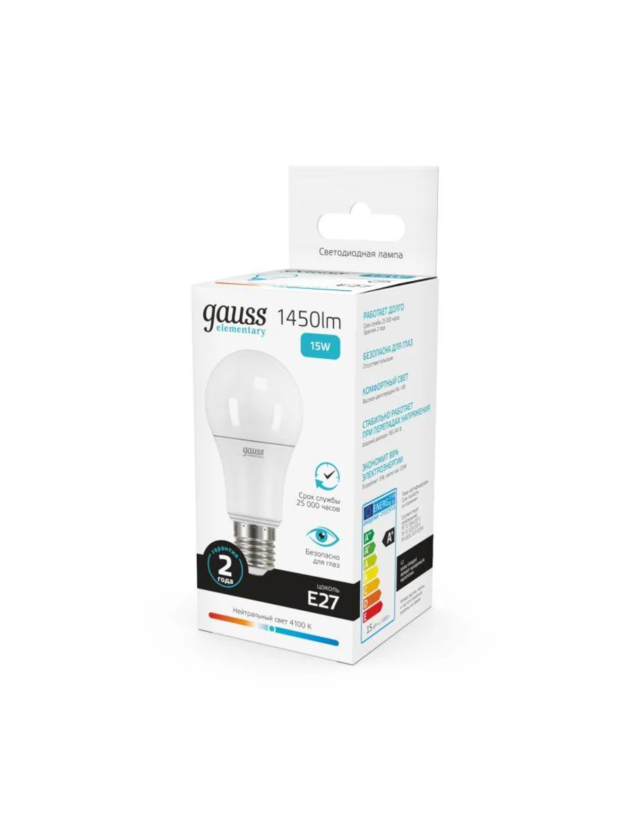 Лампа светодиодная Elementary 15Вт A60 грушевидная 4100К нейтр. бел. E27 1450лм GAUSS 23225 - купить в KeepBuilding | KeepBuilding